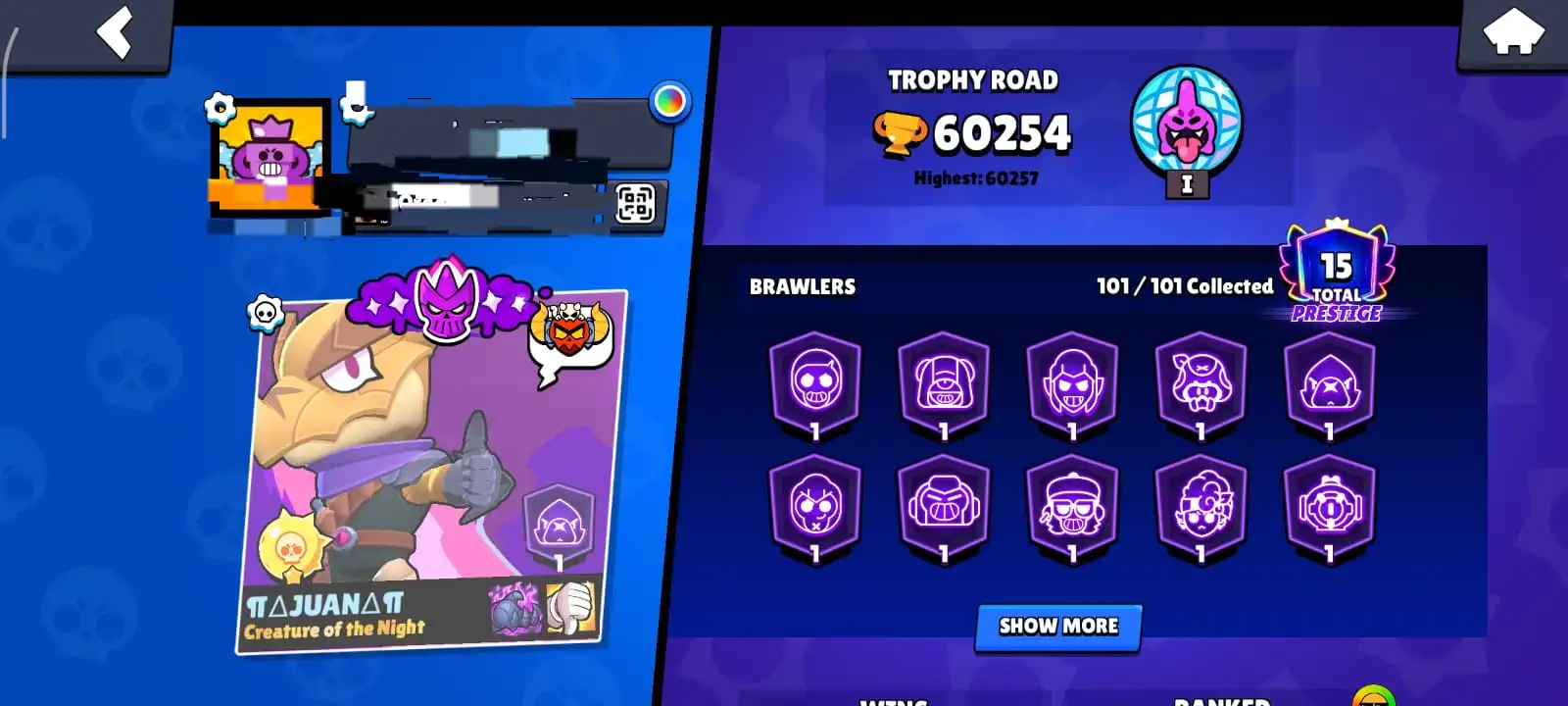 very rare[ combo cr lv 66 ]🔥62 max brawl🔥62 hypercharhed🔥328 skins🔥60254 trophy🔥full access account🔥