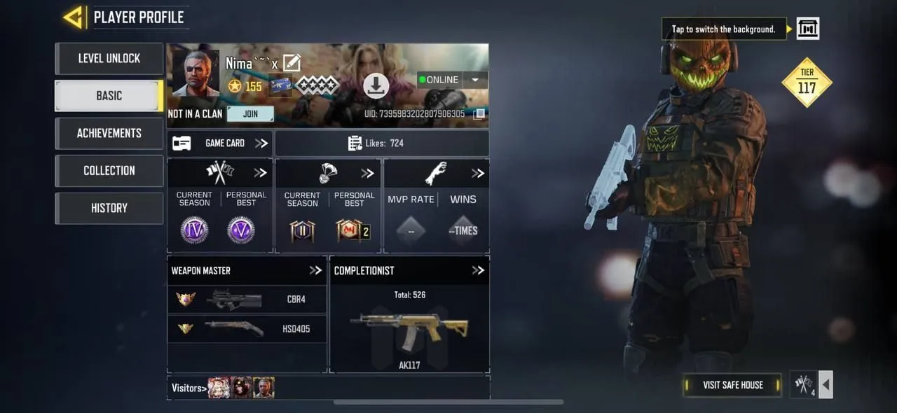 iOS Android 🎮 Level 155 💲 Rank Grand Master 🛍️ 1 Mytich ☠️ 5 Legendary 🌐 75 Epic 🔥 65 Epic Soldier 🧨 Code577
