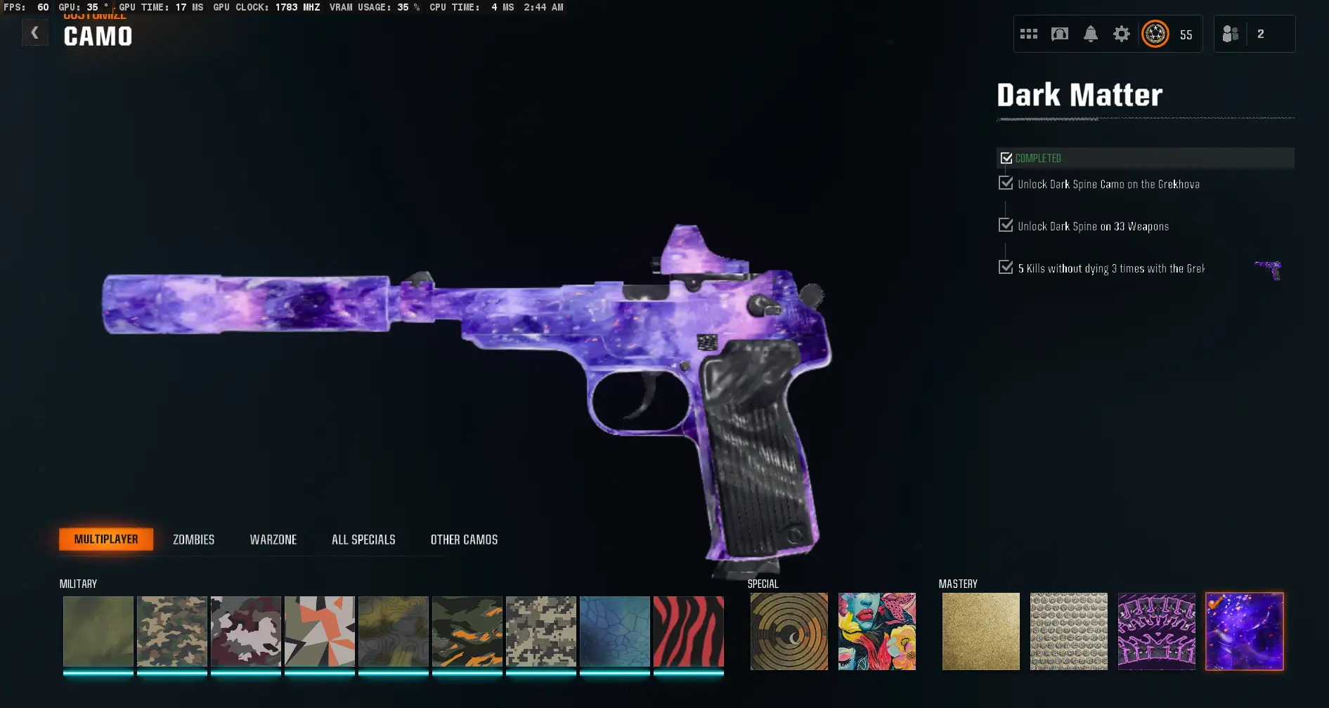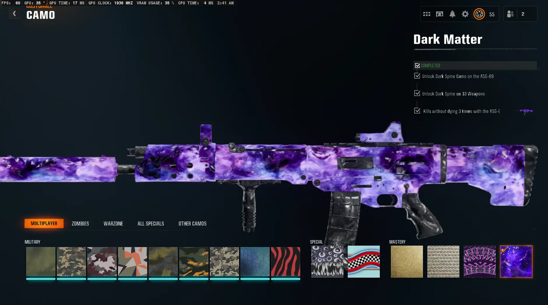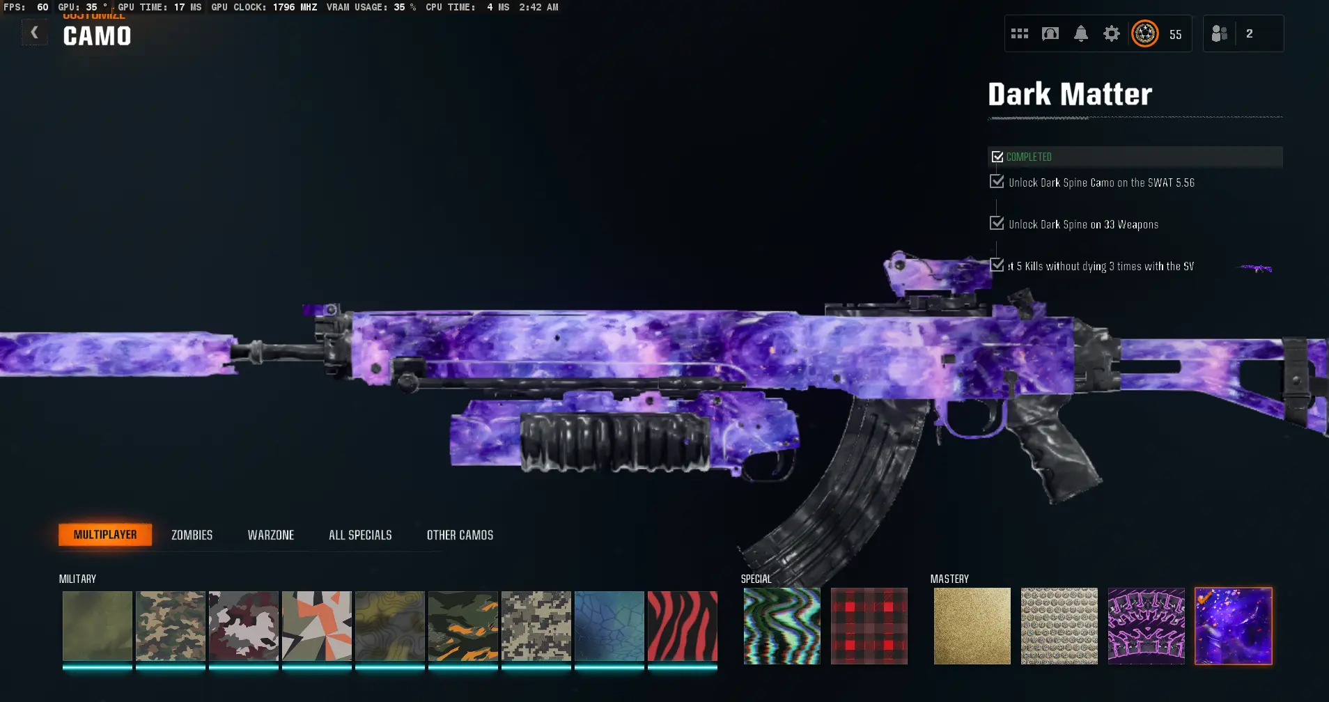 ⭐ BO6 Dark Matter | 495+ Camos | 50 Wins 🏆 | Max Level 55 ⚡ | Prestige Ready 🎯 | Full Access 🔐 | Steam/PSN/Xbox/Battle.net 🎮 | Warzone 4 Ready 🚀