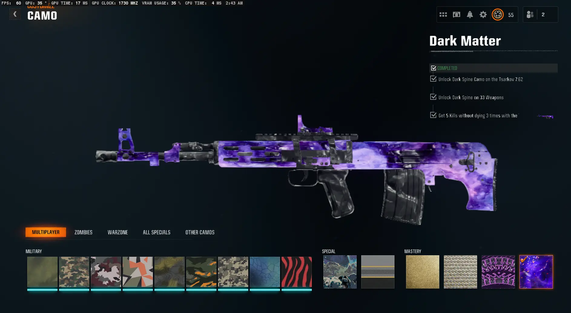 🐉 BO6 Dark Matter | 495+ Camos | 50 Wins 🔥 | Max Level 55 ⚡ | Prestige Ready 🏅 | Full Access 🛡️ | Steam/PSN/Xbox/Battle.net 🎮 | Warzone 4 Ready ⚔️