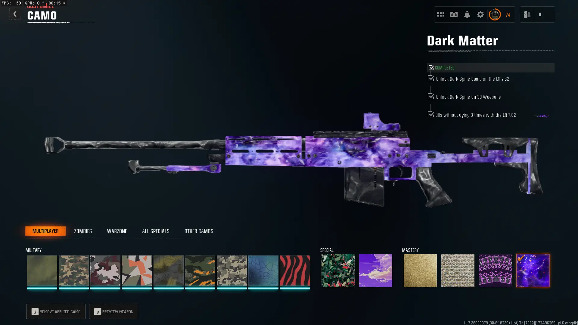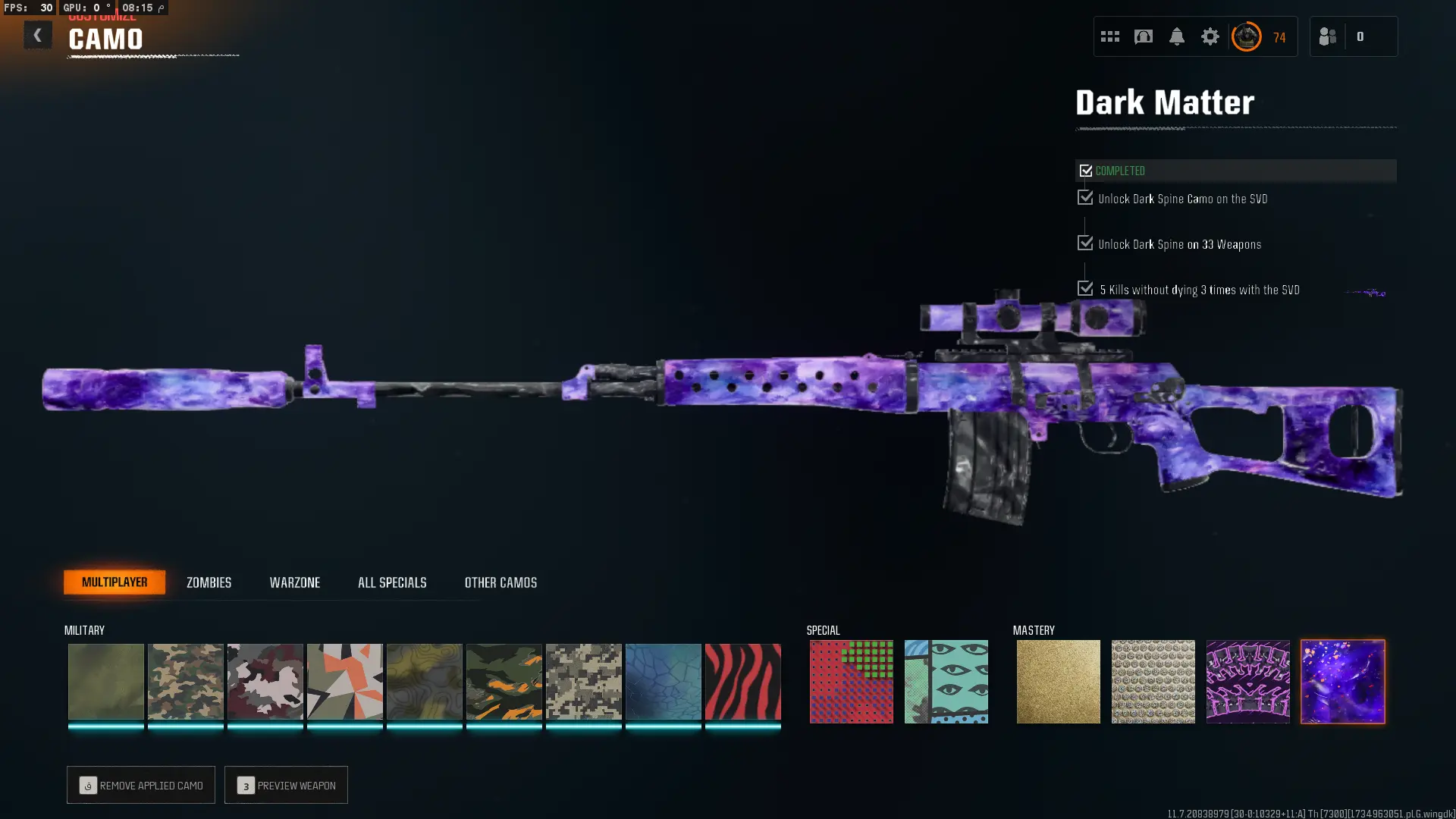 🔥 BO6{ Prestige Master } 🔥 Dark Matter x Nebula ✨ + 1000 Camos Unlocked ✨ All MP & Z Camos Unlocked ✨ Prestige Master ✨ legitimate Unlocked ✨ Linkable to: Steam, Battle.net, PSN, Xbox ✨ Black Ops 6 ✨ Warzone 4