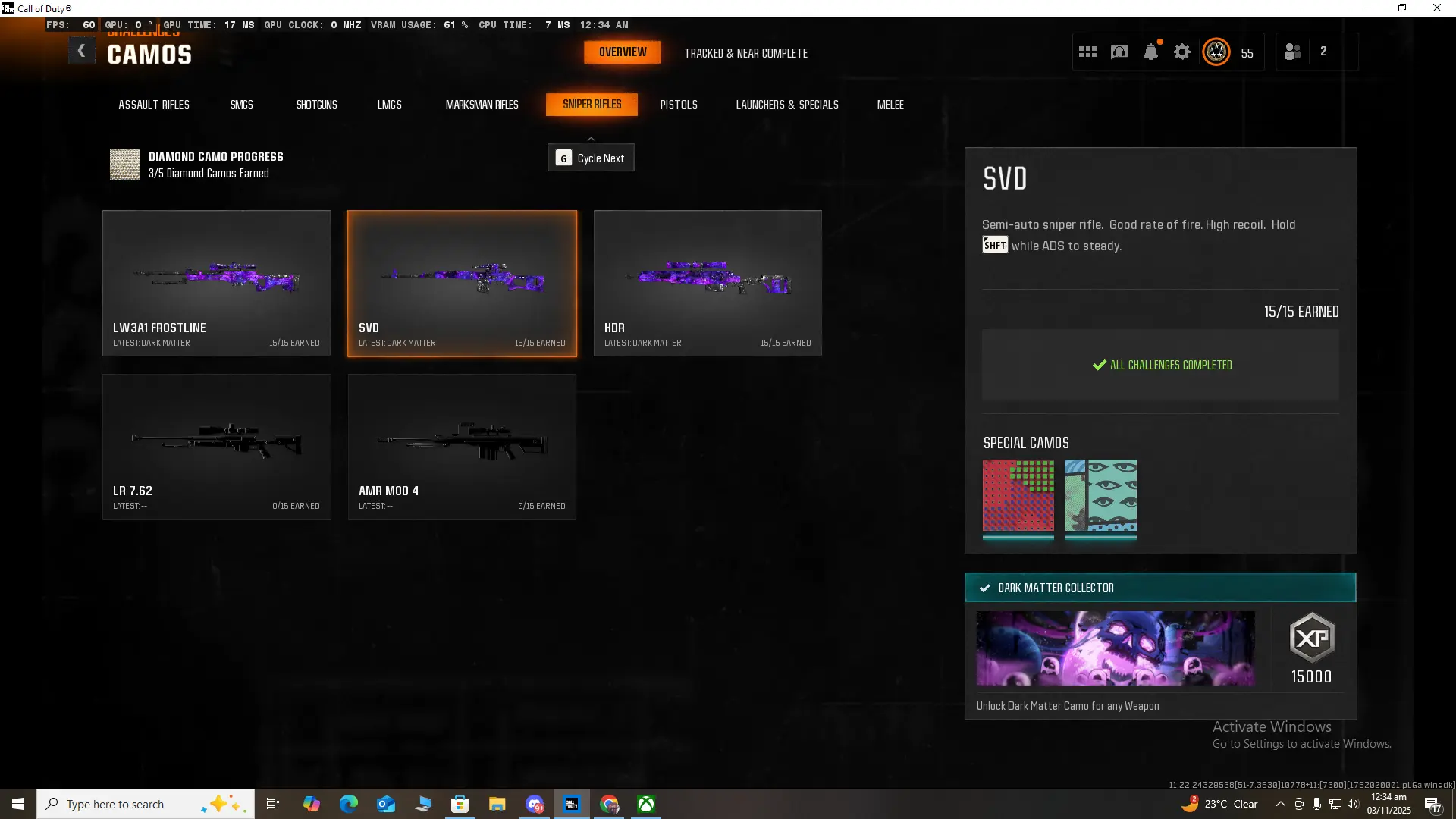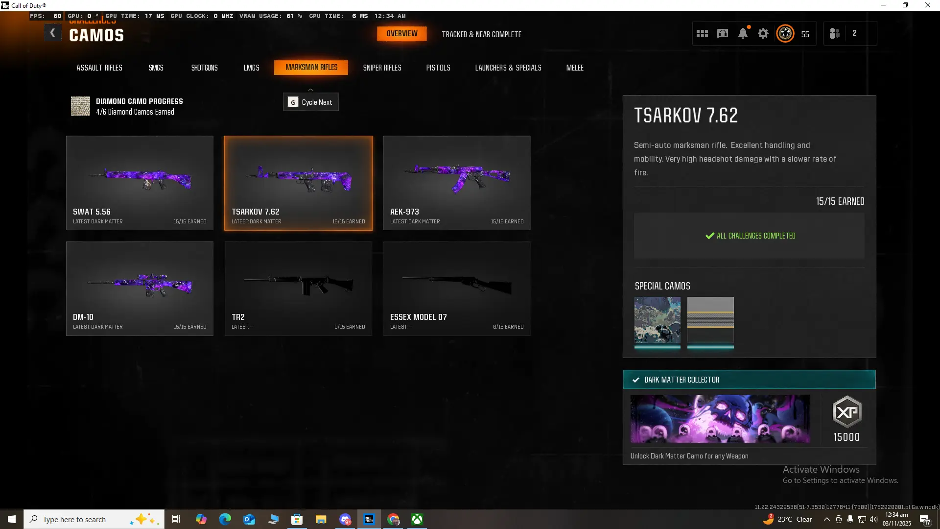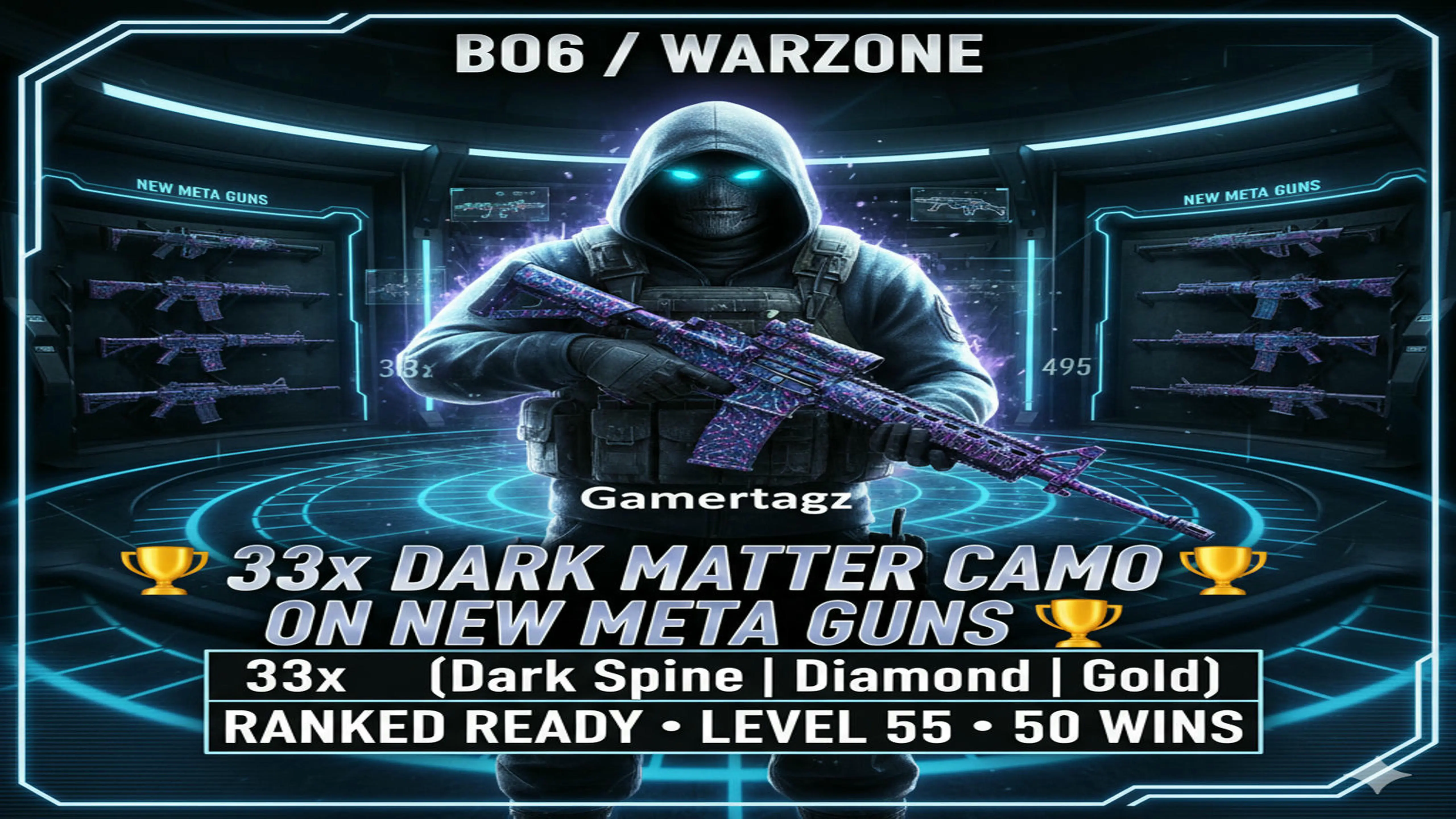 🏆 Limited 🏆 BO6 / Warzone 🏆 33x Dark Matter Camo on NEW META GUNS 🏆 33x ( Dark Spine , Diamond , Gold ) 🏆 495 Camos 🏆 Ranked Ready 🏆 Level 55 🏆 50 Wins 🏆 Steam , Battle Net , PSN , XBOX #RwoIJu