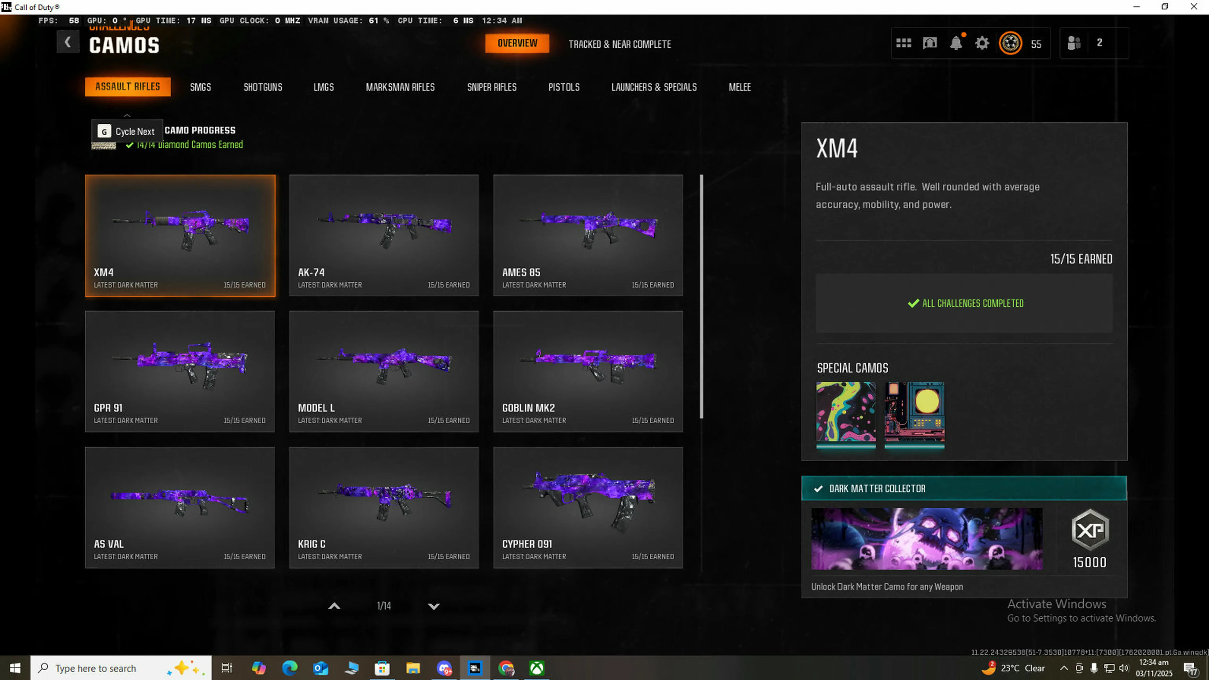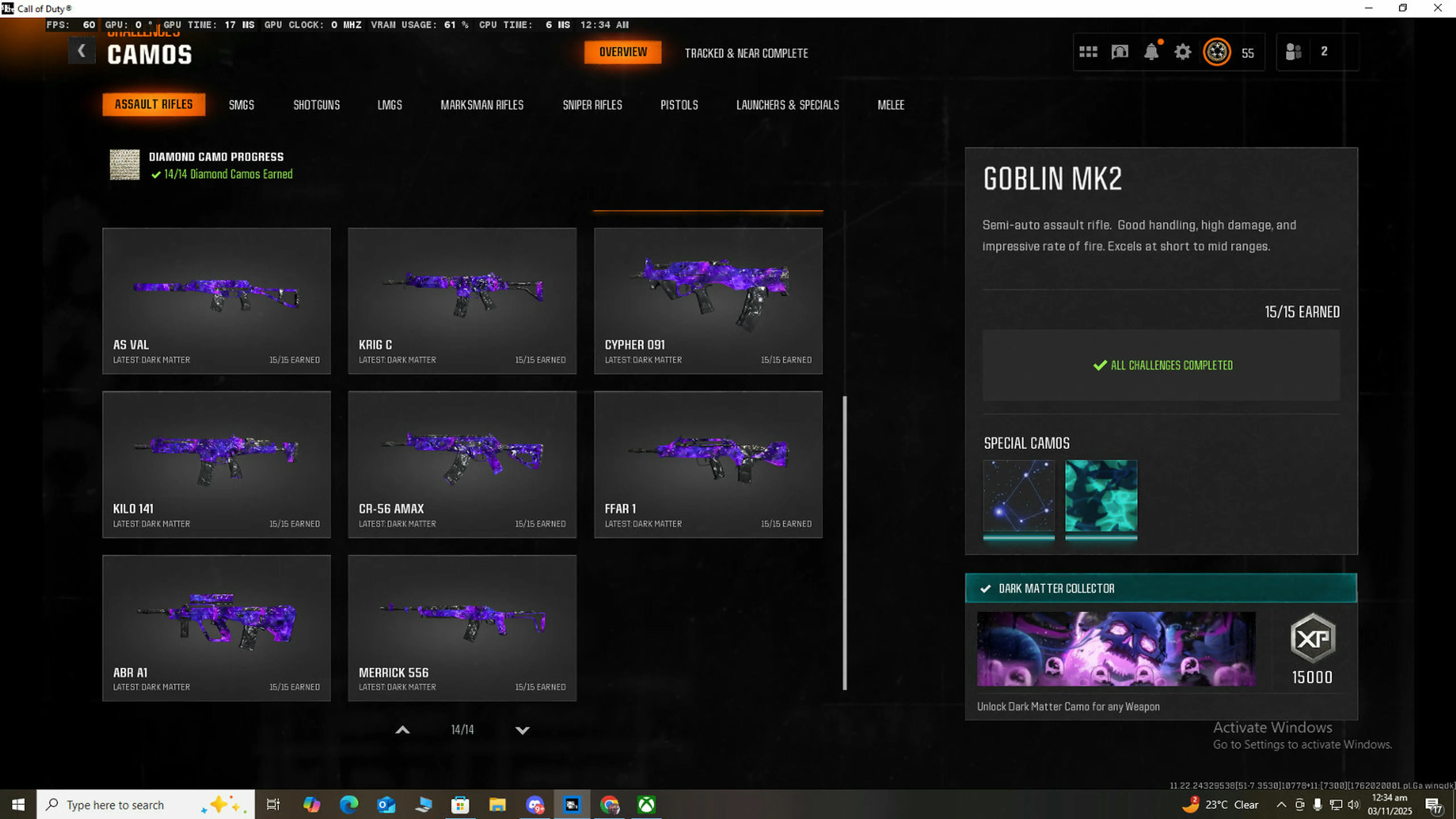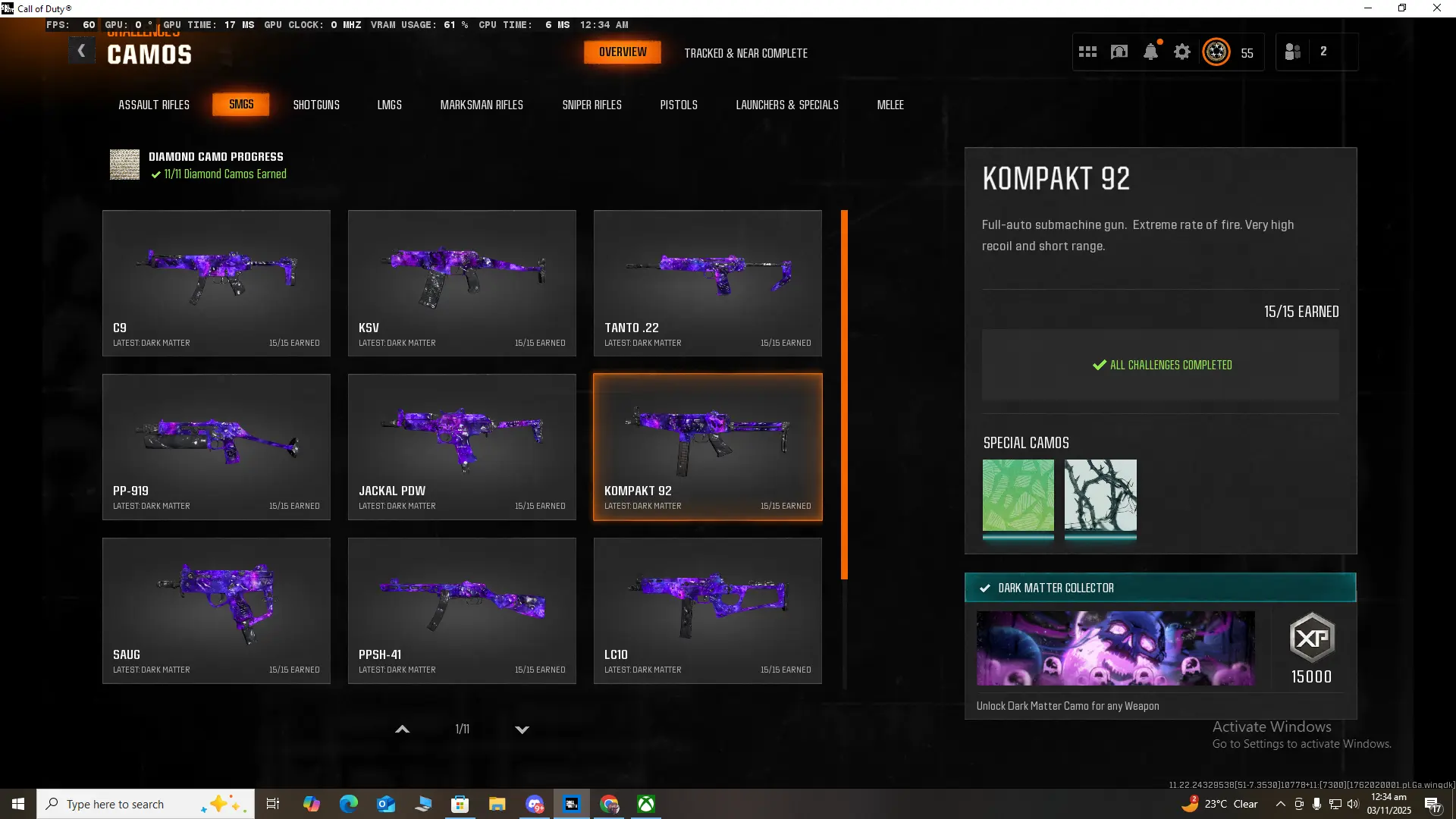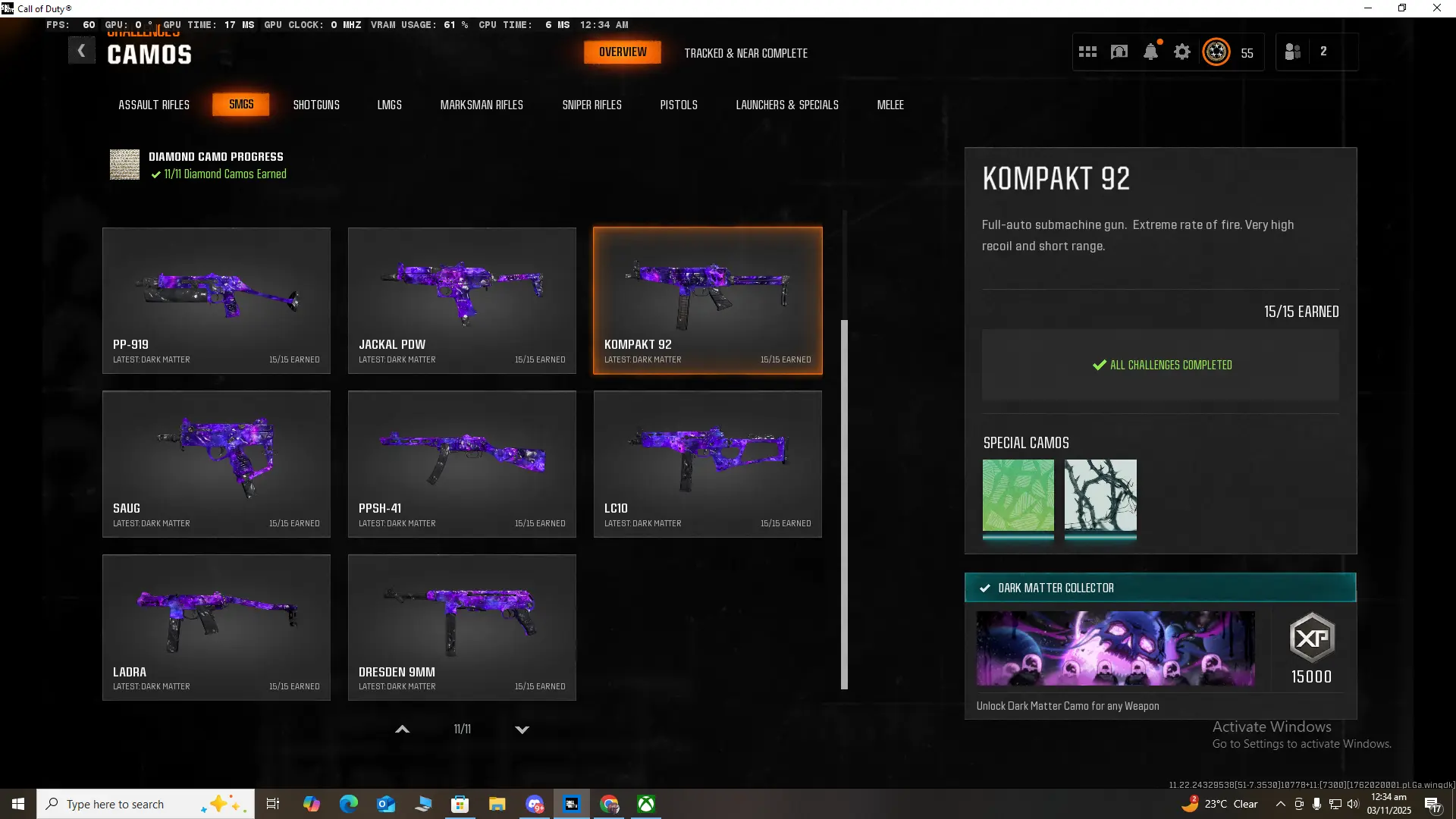 🏆 Limited 🏆 BO6 / Warzone 🏆 33x Dark Matter Camo on NEW META GUNS 🏆 33x ( Dark Spine , Diamond , Gold ) 🏆 495 Camos 🏆 Ranked Ready 🏆 Level 55 🏆 50 Wins 🏆 Steam , Battle Net , PSN , XBOX #RwoIJu