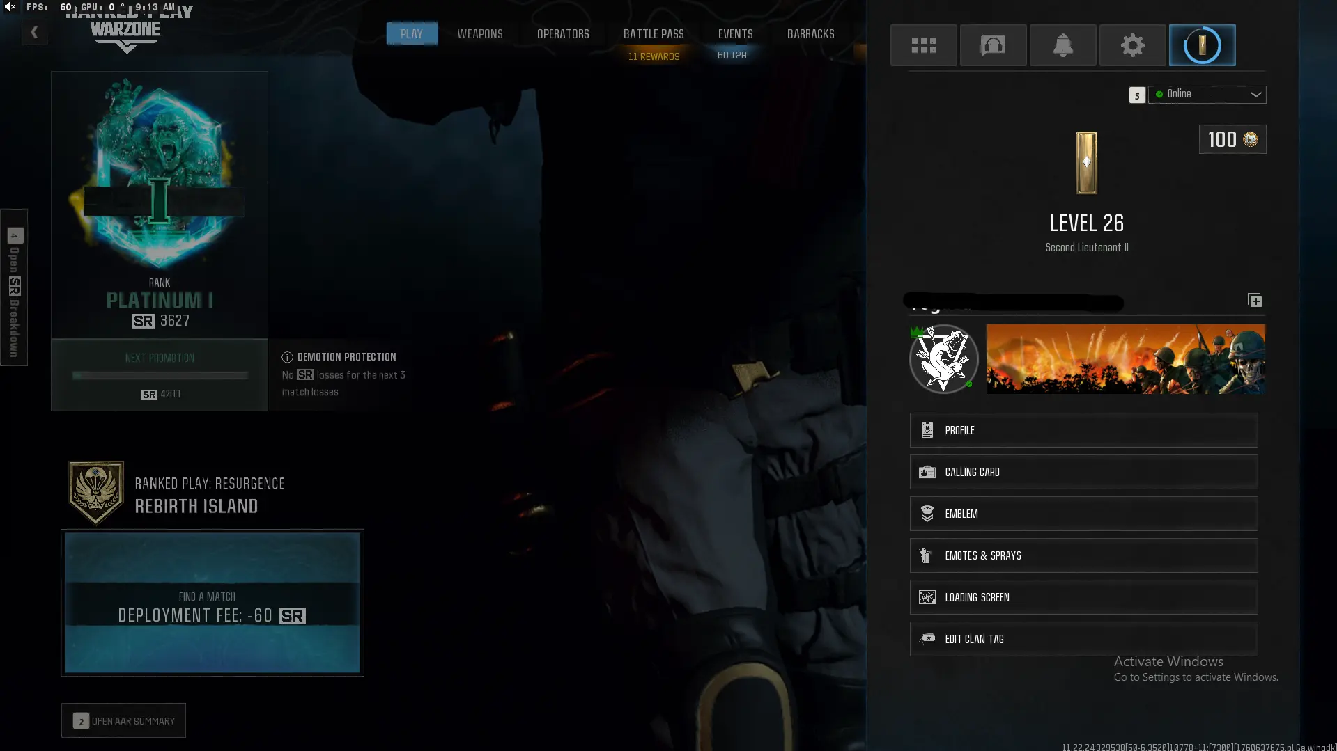 Steam ⸱ Wz4 ✨ PLATINUM 1 RANK SR 3627✨ 1-2 Guns Max ✨ Resurgence ✨ ✨ Ranked Ready✨ Linkable To all Platform ✨ Instant delivery # rfr rank ready warzone 4