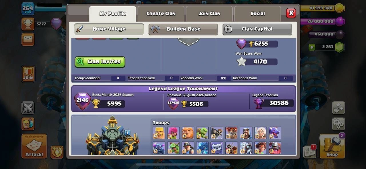 ⭕️ 11 EPIC MAX ⭕️ TH 17 MAX FULL ⭕️ 30000+ LEGEND CUPS ⭕️ 6x SCENERIES ⭕️ 1200+ MEDALS ⭕️ 40 SKINS ⭕️ STACKED ⭕️ BOTH SIDE MAX ⭕️ 31 EQUIPMENTS MAX ⭕️ S09