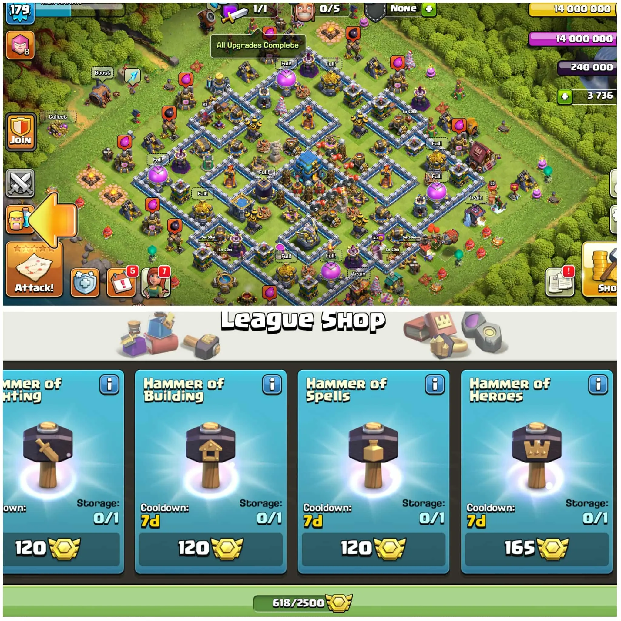 [3736 Gems]➤➤Th12 Full Max➤➤2378 War Stars➤➤618 Cwl Medals➤➤Full Magic Items➤➤Nc Available➤➤Exp:179
