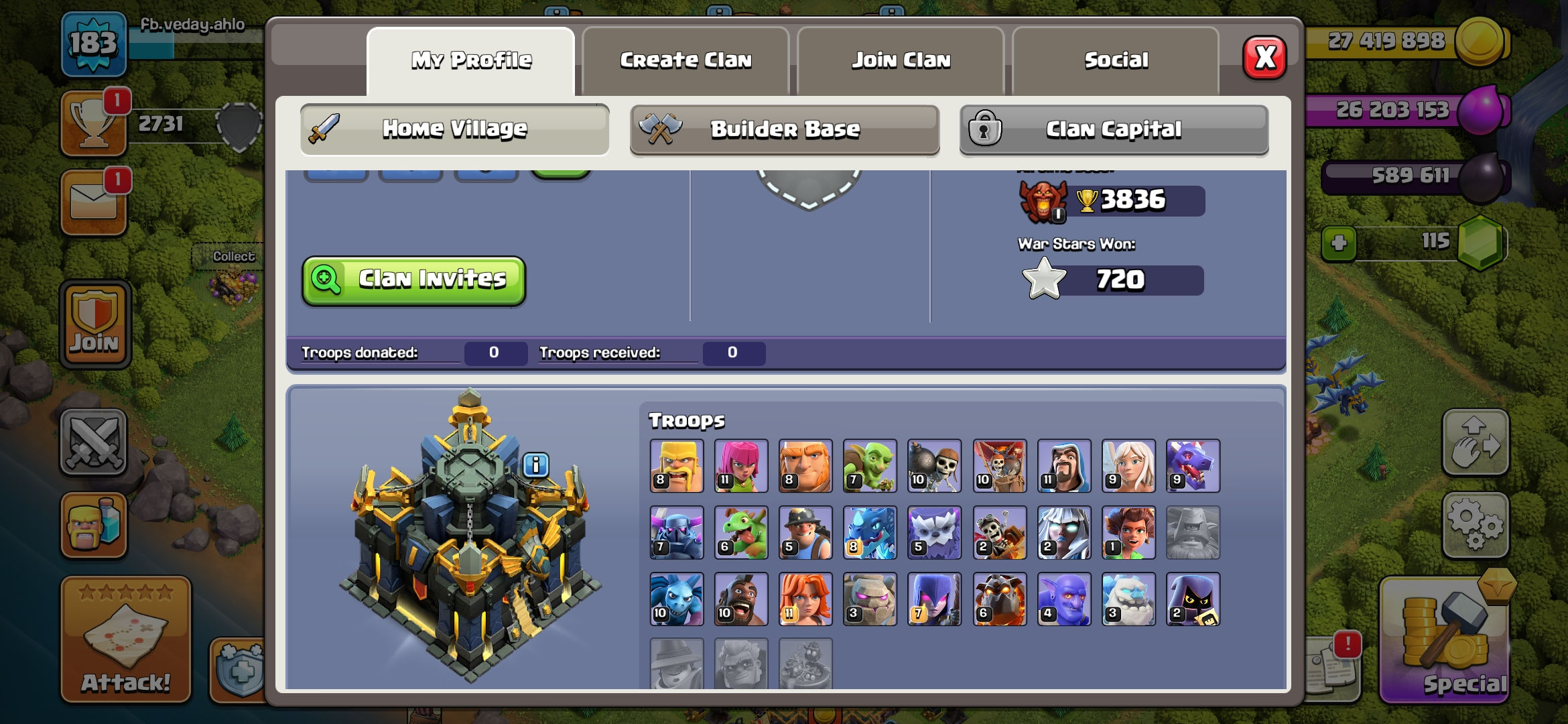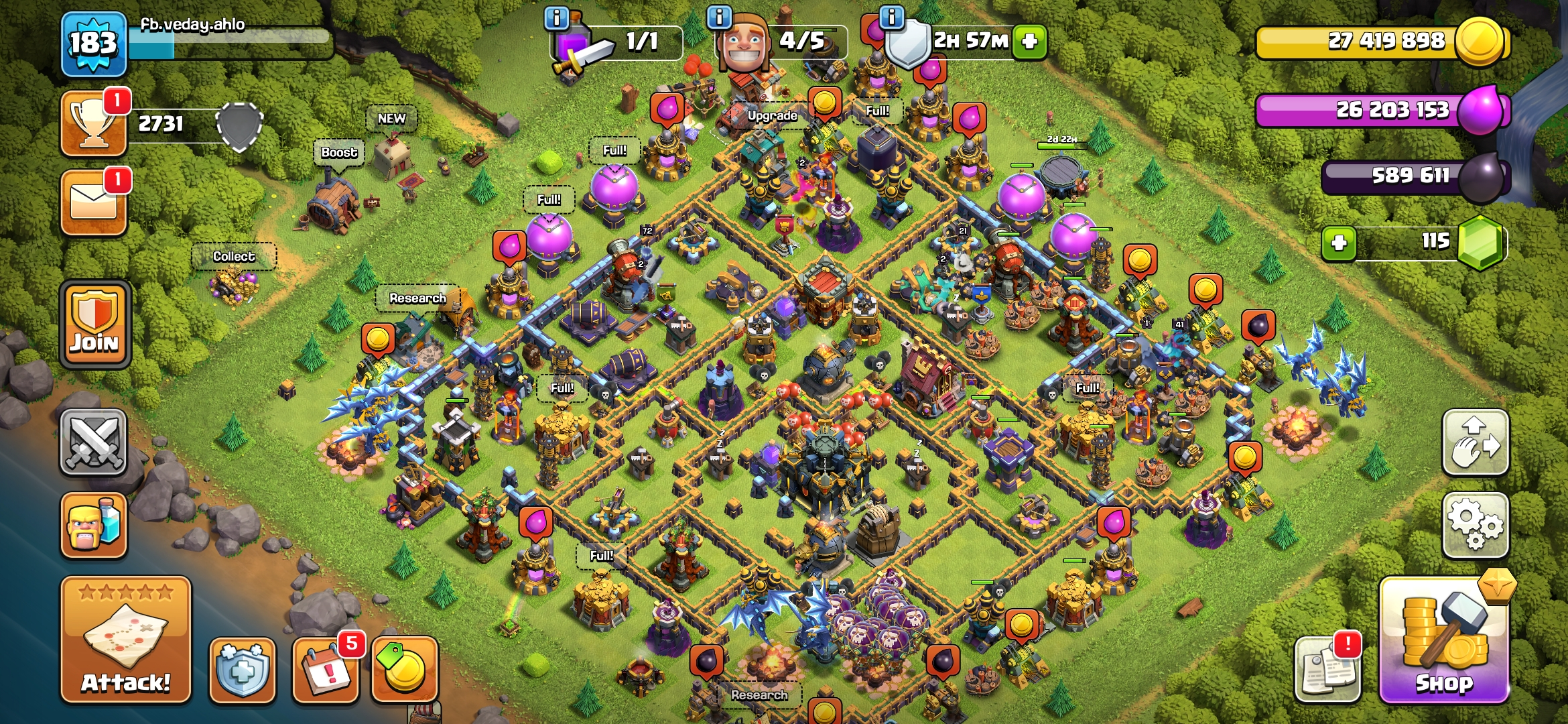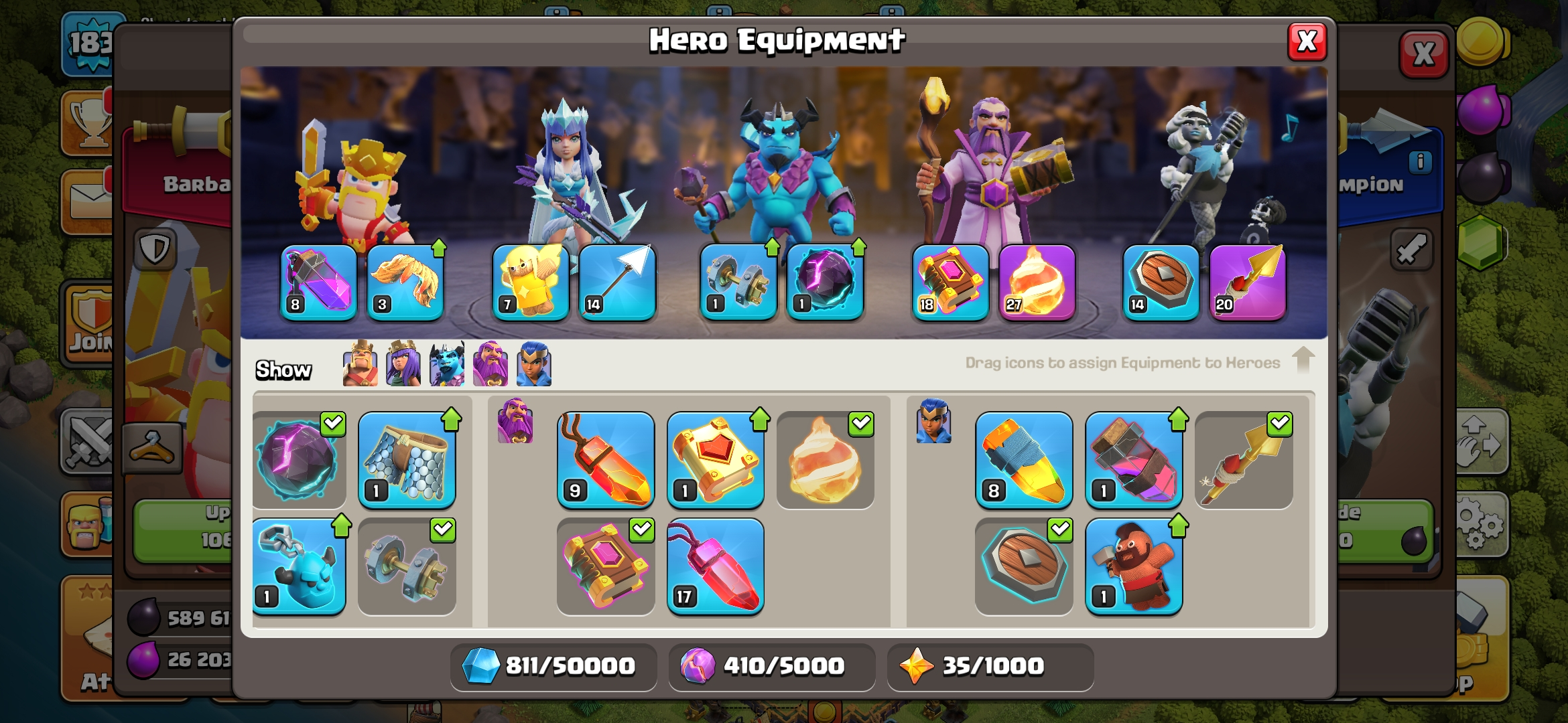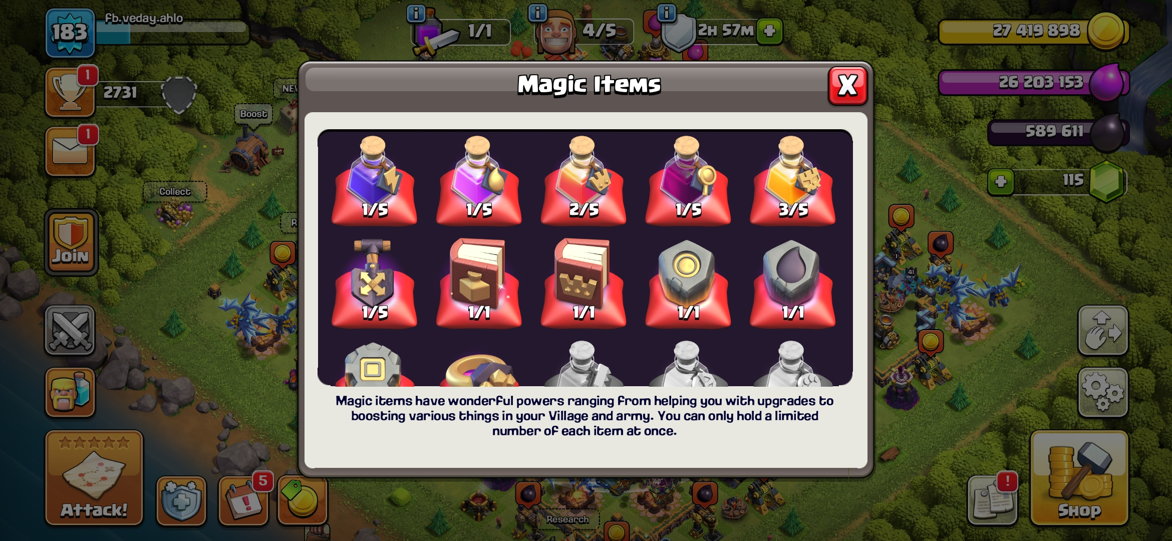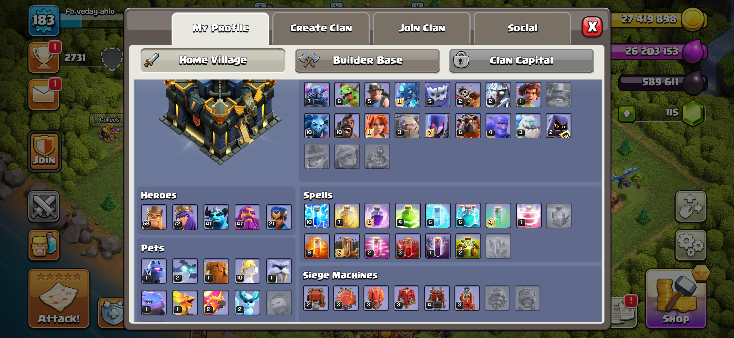Best Epics FireBall- Rocket Spear Max-Th17 Perfect Account-Xp183-Hero 56-72-41-47-21- Defence Wall Max Type-magic Items-Full Access