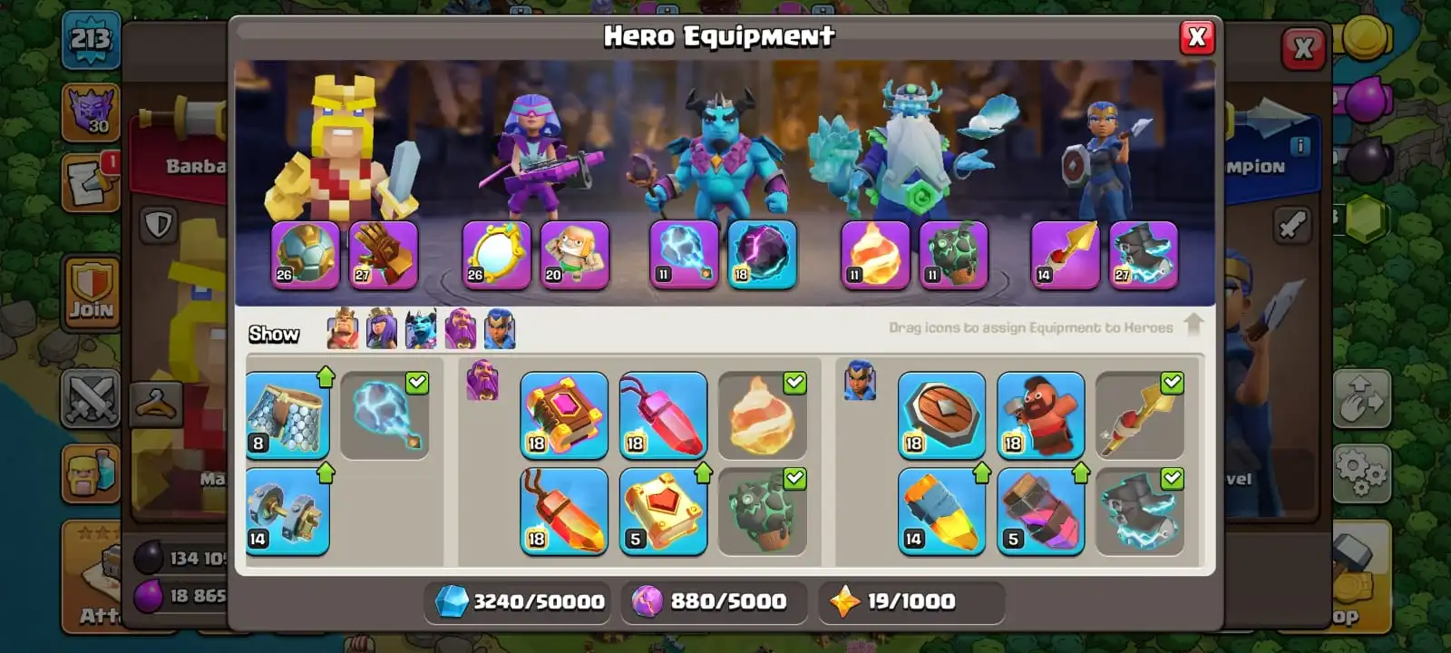 CHEAPEST [ 2 EPIC EQUIPMENT MAX ]🔥TH 17🔥HEROES MAX 100-100-73-75-50 FULL EPIC EQUIPMENT🔥MAGIC & JUNGLE & CLASHRAMA SCENERY🔥MAGIC ITEMS READY🔥FULL ACCESS ACCOUNT🔥
