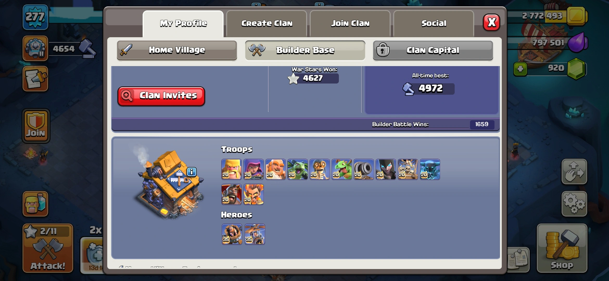 [CHEAPEST] HIGH XP 277 | TH18 MAXED ✅️ 4627 WAR STARS NICE EQUIPMENT ✅️ MAX 5 HERO ✅️ DRAGON DUKE LVL 14 ✅️ MAX BB BASE