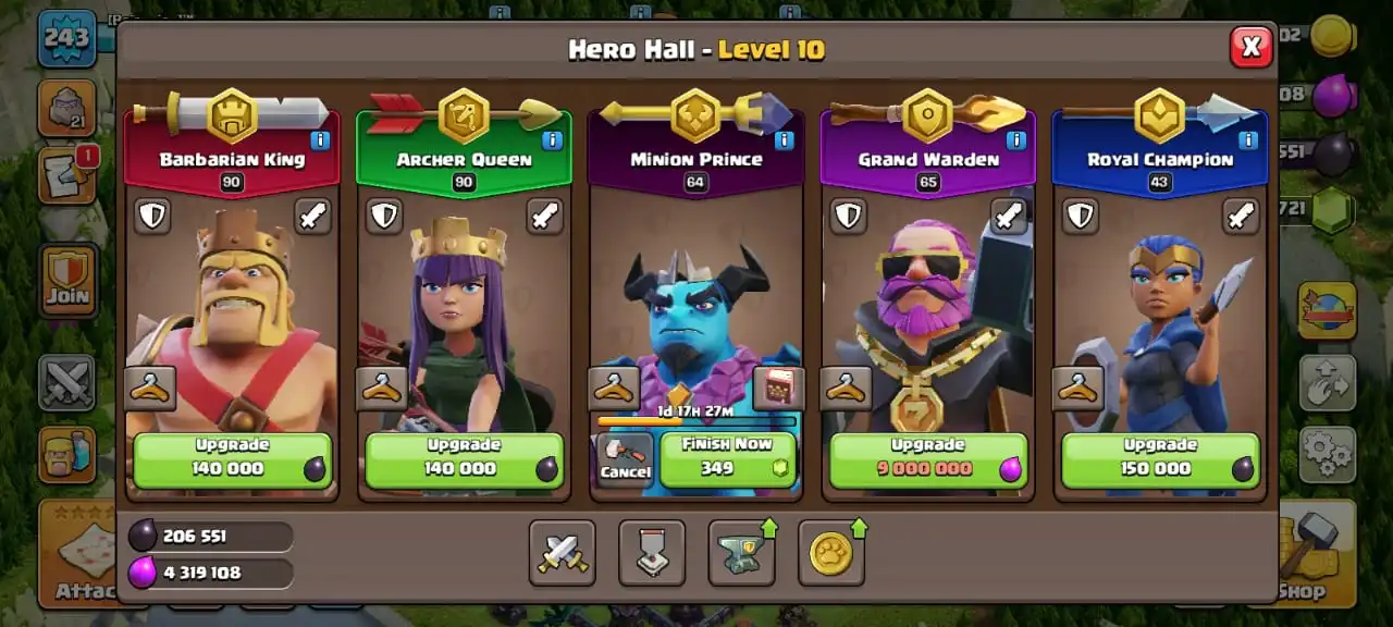 Cheapest✅TH 16 ex th 15 max🔥high heroes level 90/90/64/65/43☠️10 epic equipment⚒️max builder base✅free name change