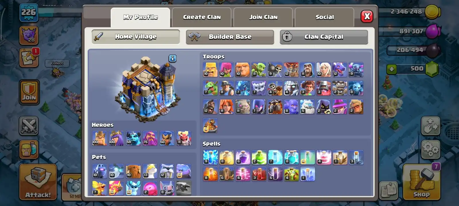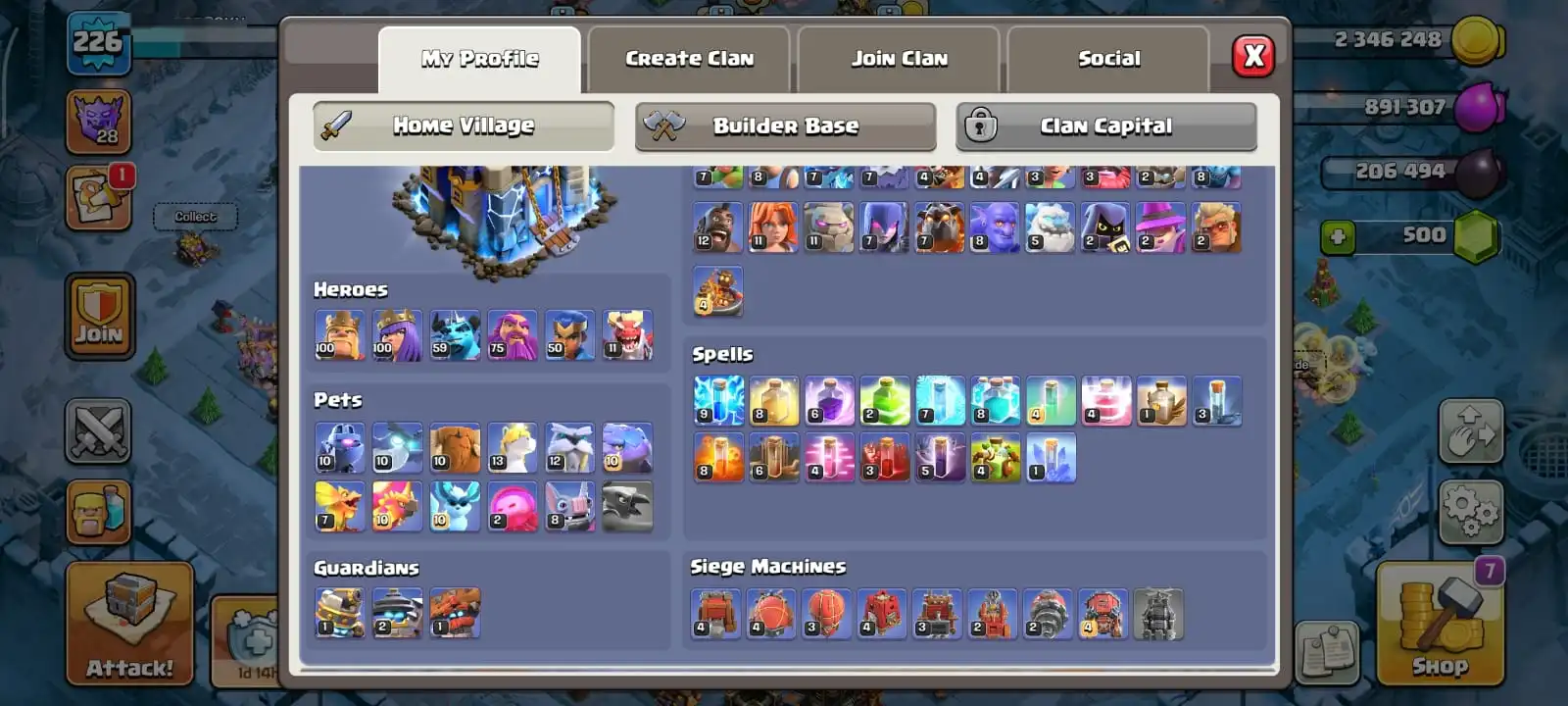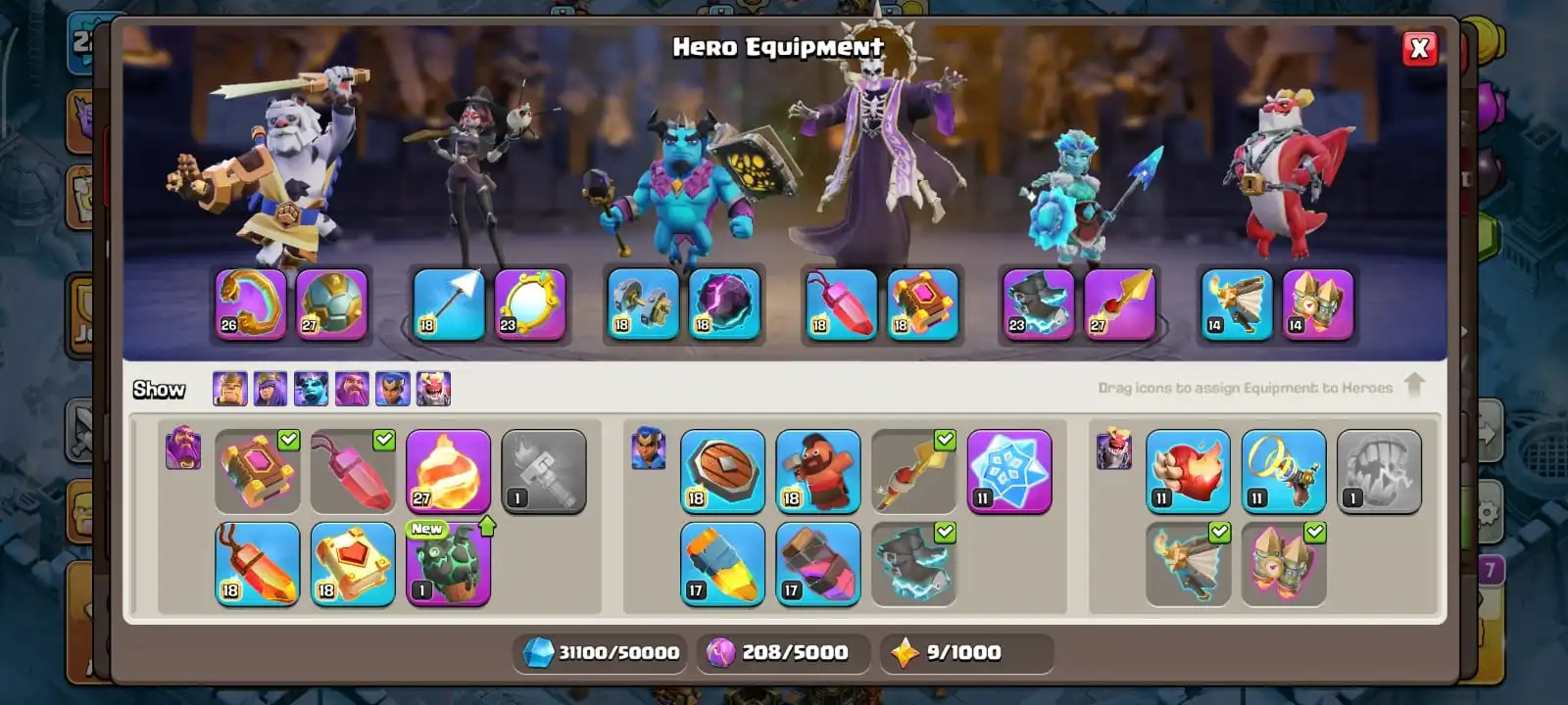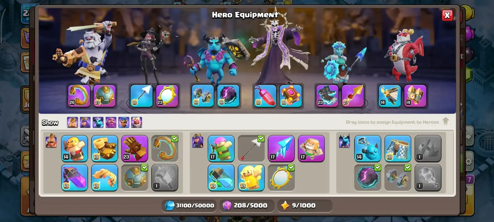 cheapest🔥th 18 all most max🔥heroes 100-100-59-75-50🔥epic max 3🔥scenery forst age & dragon place🔥magic items ready🔥full access account🔥