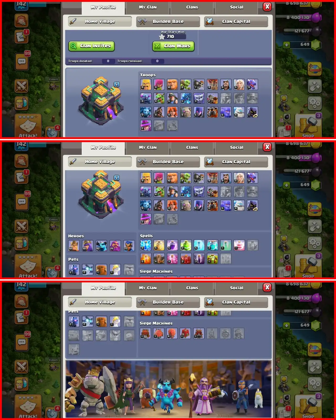 Decent Th 14 | Max All Equipments | 500 NC | Items loaded | 200 Medels | High Lvl Walls | Troops Max | Dfnc Max | Good BB | Best for war |