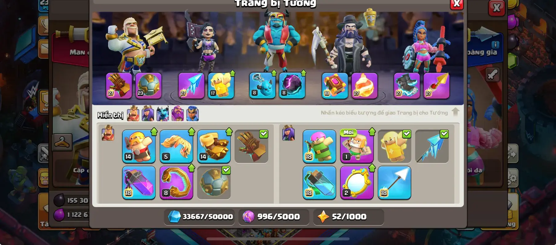 PREMIUM TH17 FULL MAXED HEROES-PETS AND TROOPS- MAX 6 RARE EQUIPMENTS- MANY EXCELLENT SKINS-2 SCENERY-MAX BUILDER-QD2014