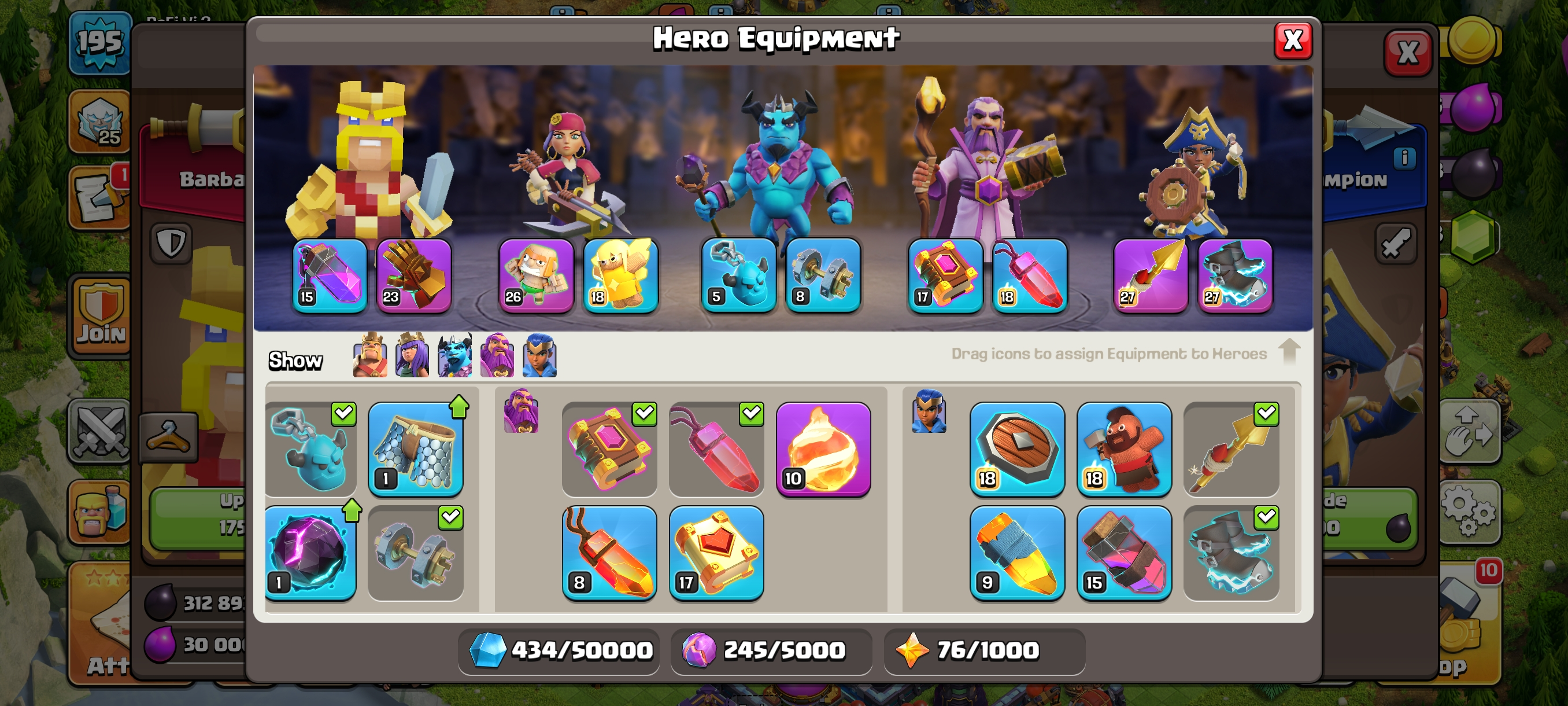 Rare 6X Epics GG-AF-EB-RS Max-Th17 Best Account-Xp195-Hero 77-79-44-56-34-6 Builder-6 Skin-Full Access