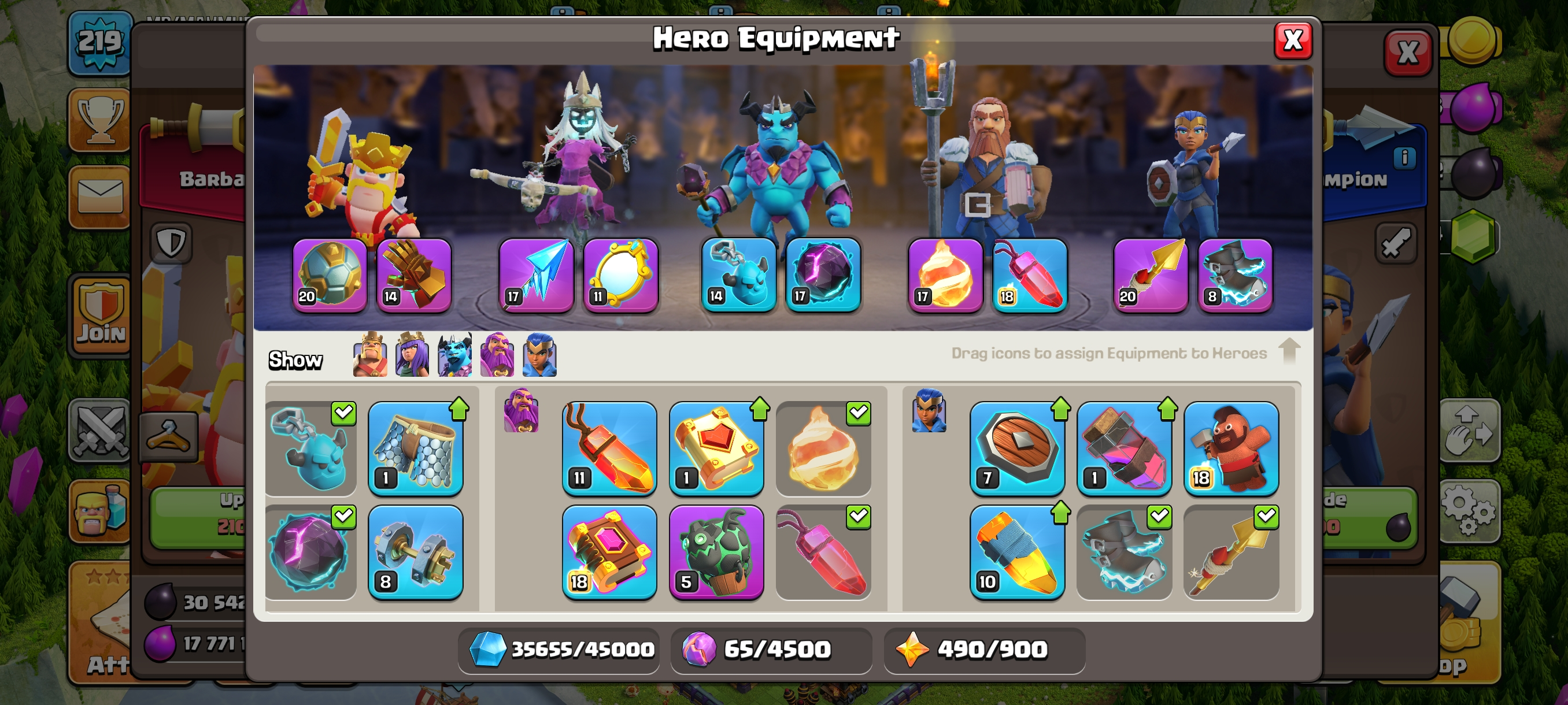 Rare 8X Epics High-Th15 Near Max-Xp219-Hero 80-90-62-65-33- Builder Hall Max-Wall Defense Max-Nc 500-Full Access