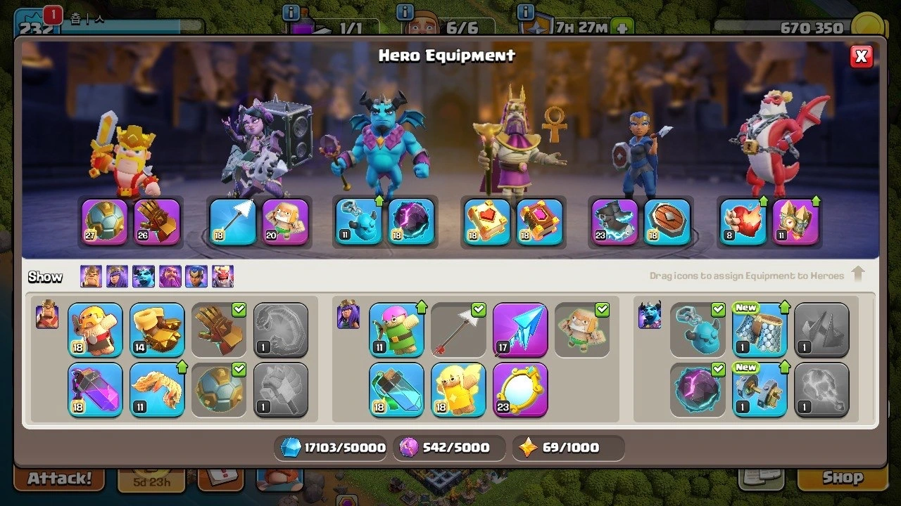 Semi-Maxed TH18 | Great Heroes 95/86/71/70/45 ⭐️ 13 Maxed Equipments {1 Epic} ⸱ StAcKeD 😈 XP level ⸱ 232 🔥