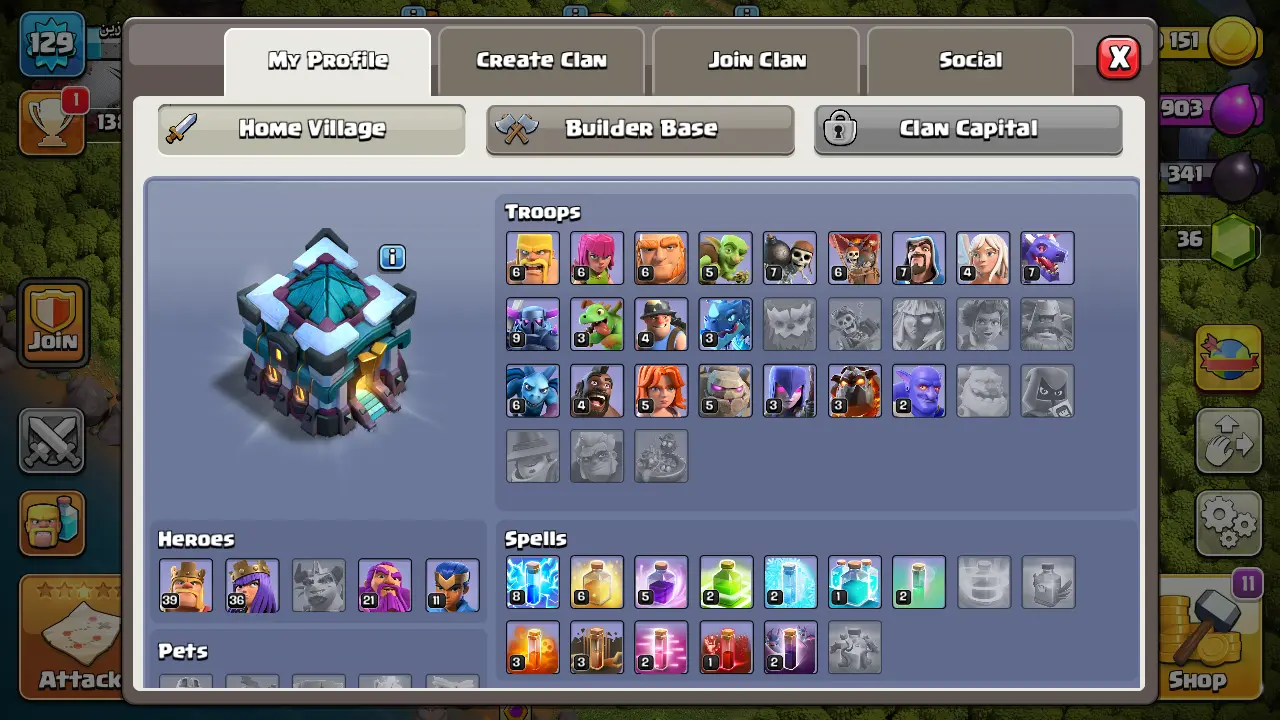 ✅ TH 13 ✅ LVL 129 🔰 HERO 39-36-21-11 🔰 WALL 10-12 LVL 🔰 1383 TROPHY 🔰 36 GEMS 🔰 CS330