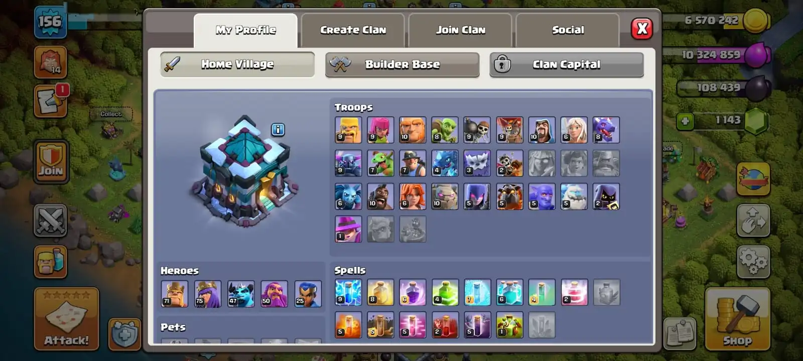 TH 13 MAX🔥FREE CHANGE NAME🔥HEROES 71-75-47-50-25 SPIKY BALL & MAGIC MIRROR & FIRE BALL & ROCKET SPEAR ON🔥MAGIC ITEMS READY🔥MENDALS 103🔥FULL ACCESS ACCOUNT🔥