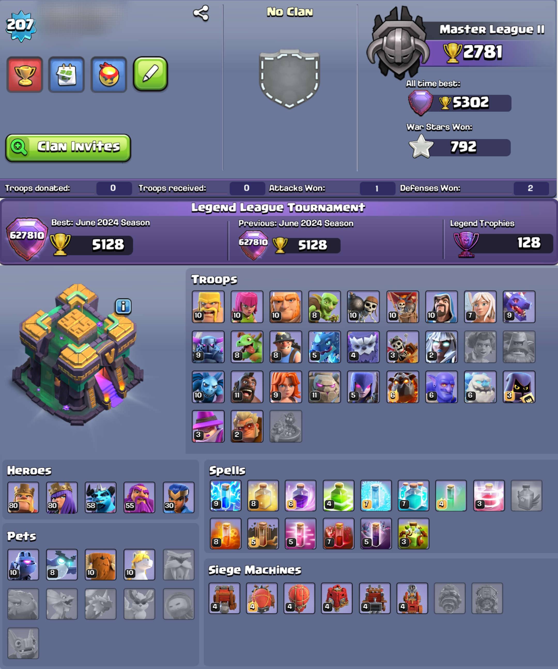 🍀TH 14 MAX ACC ⭐ 6 EPIC EQUIPMENT 🫧4 HEROES MAX 🏅207 XP LVL ♾️ OP MAGIC ITEMS ❤🔥 2053 CWL MEDALS 💗 OP HEROES SKIN 💎 642 WAR STAR ⭐ SAFE N SECURE 🔐 INSTANT DELIVERY📮