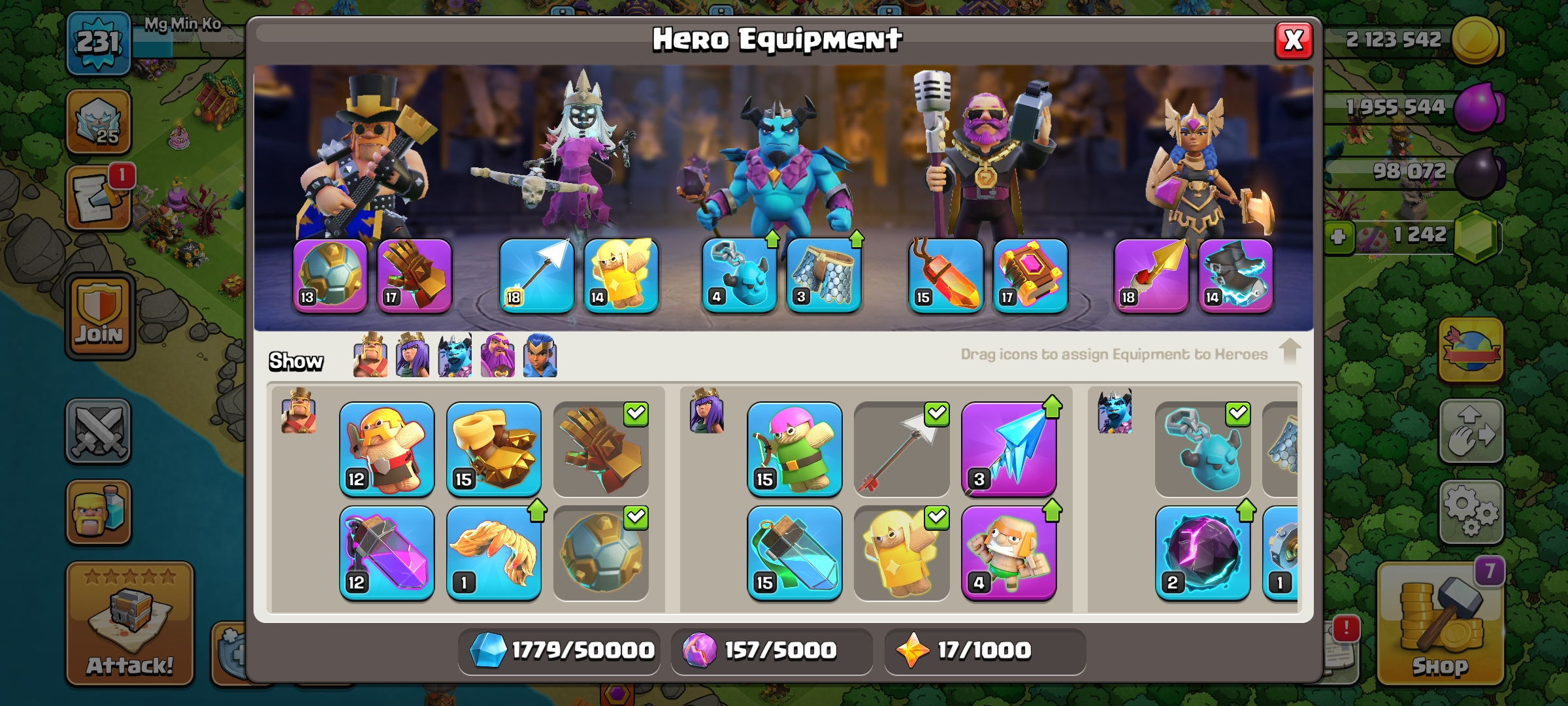 💫 TH 16 ALMOST MAX 🌟 DEF FULL MAXED 💎 HERO 79-95-62-70-39 ✨ 9 EPIC EQUIPMENT 👑 357 CWL MEDAL 🥉