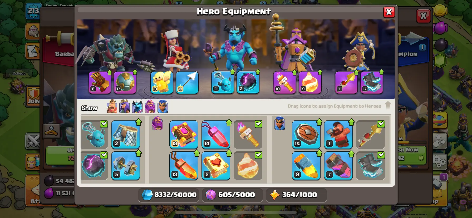 Th 16 Donation Clans 🔥 Full Equipment Epic 🔥 Heroes Lvl 73-81-48-55-32🔥 Cn 500 Gems 35🔥 instan Delivery 💯