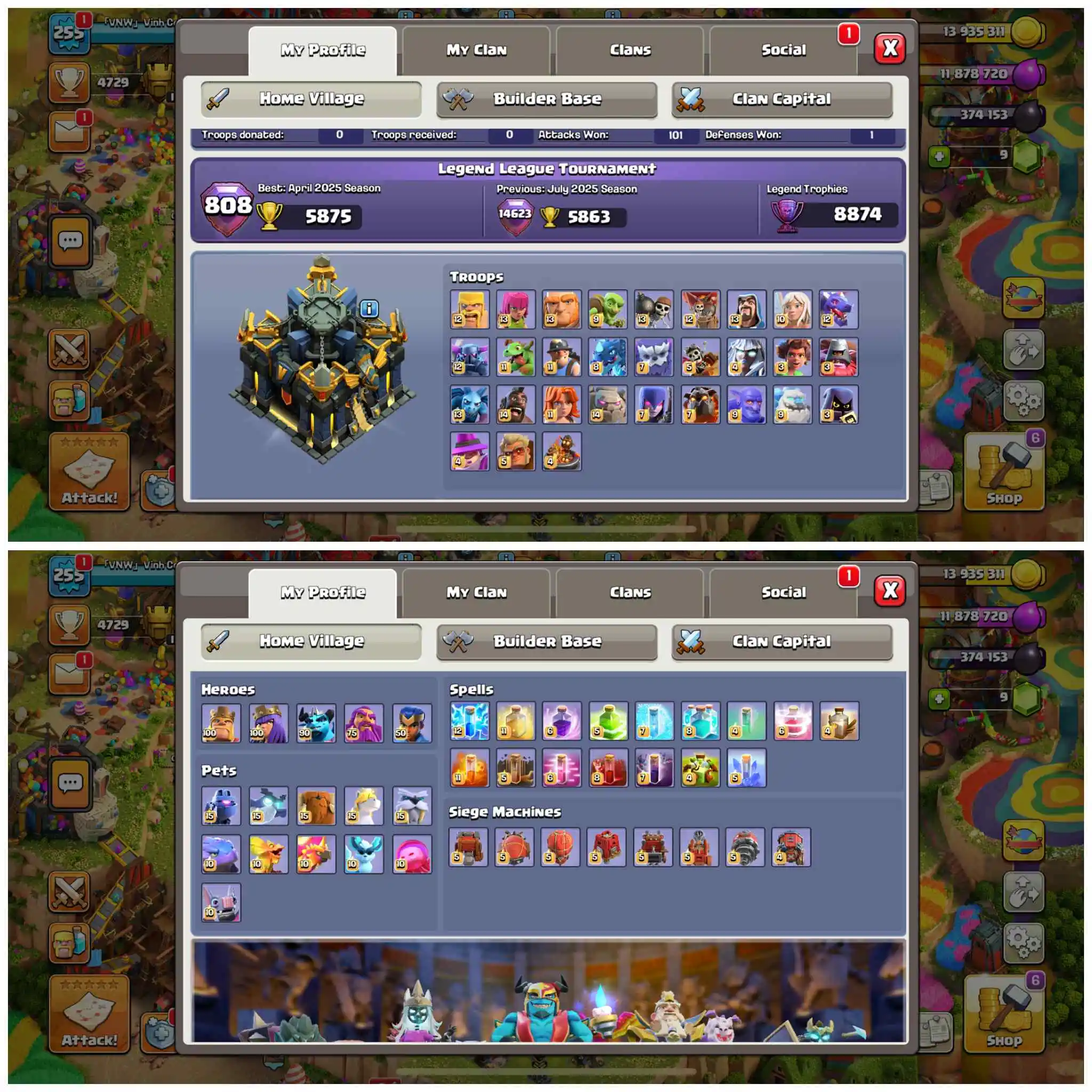 TH 17 FULL MAX NOTHING LEFT || ALL EQUIPMENT MAX || 1k MEDALS CWL || MAX BUILDER BACE || 808 RANK GLOBAL ||GOOD SKIN SCENERY || BEST DEAL