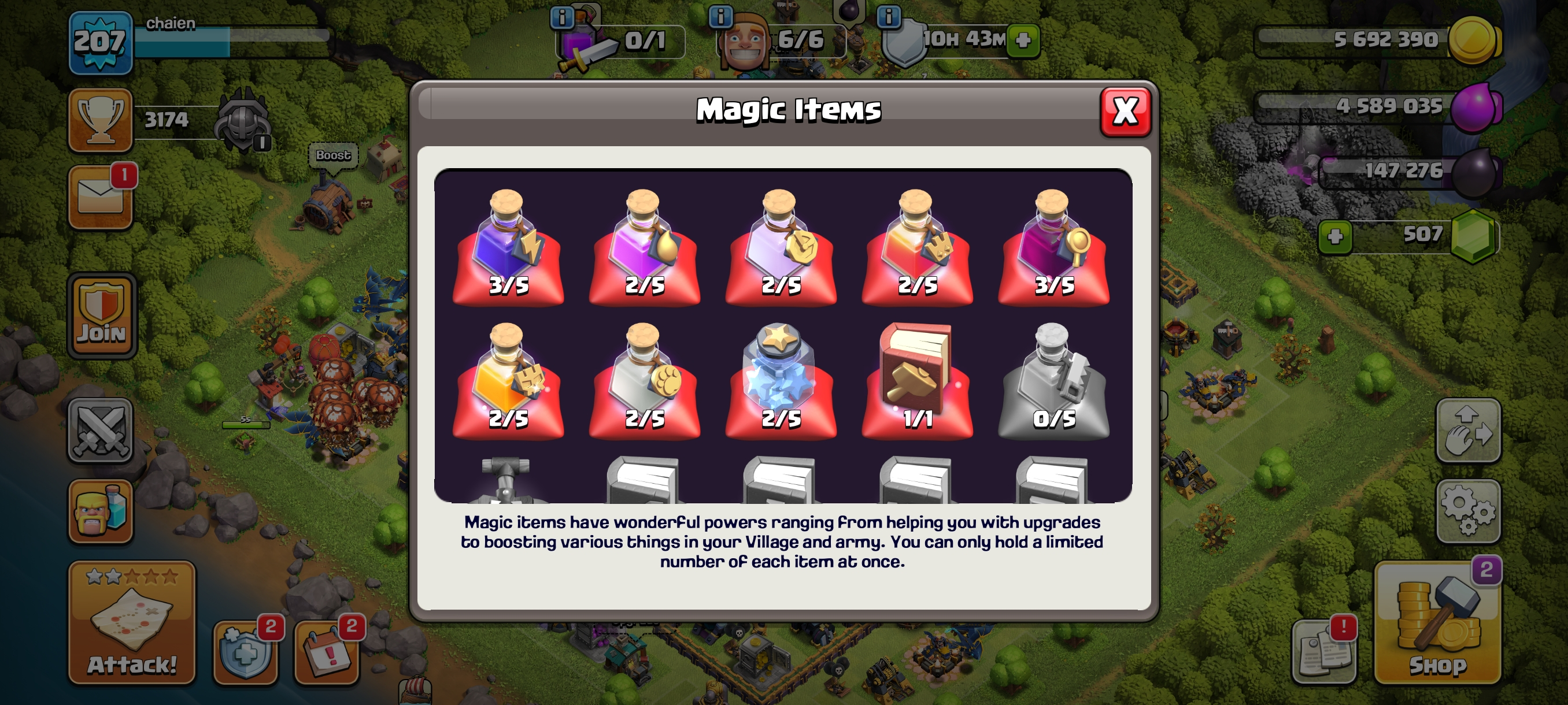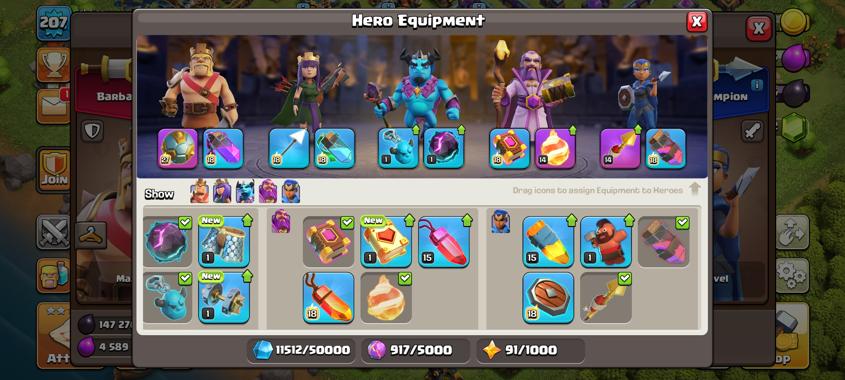 Top 5X Hero Almost max-Giant Gauntlet Max-Th17-Xp207-Hero 100-100-78-75-50-627 Madel-6 Builder-Magic Items-Nc 500