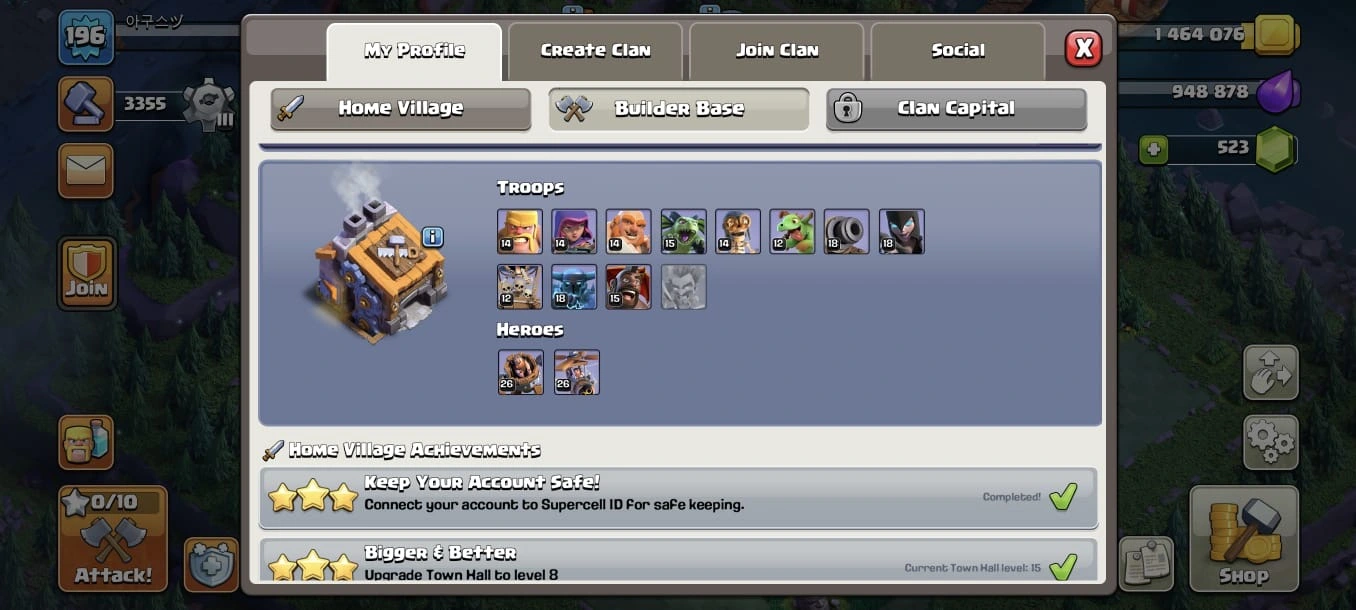 Town Hall 15 Allmost Max 🔥 Skill Epic All on 🔥 Have skins Heroes 🔥 6 Builder unlocked 🔥 Change Name On 🔥 Guaranteed account🔥