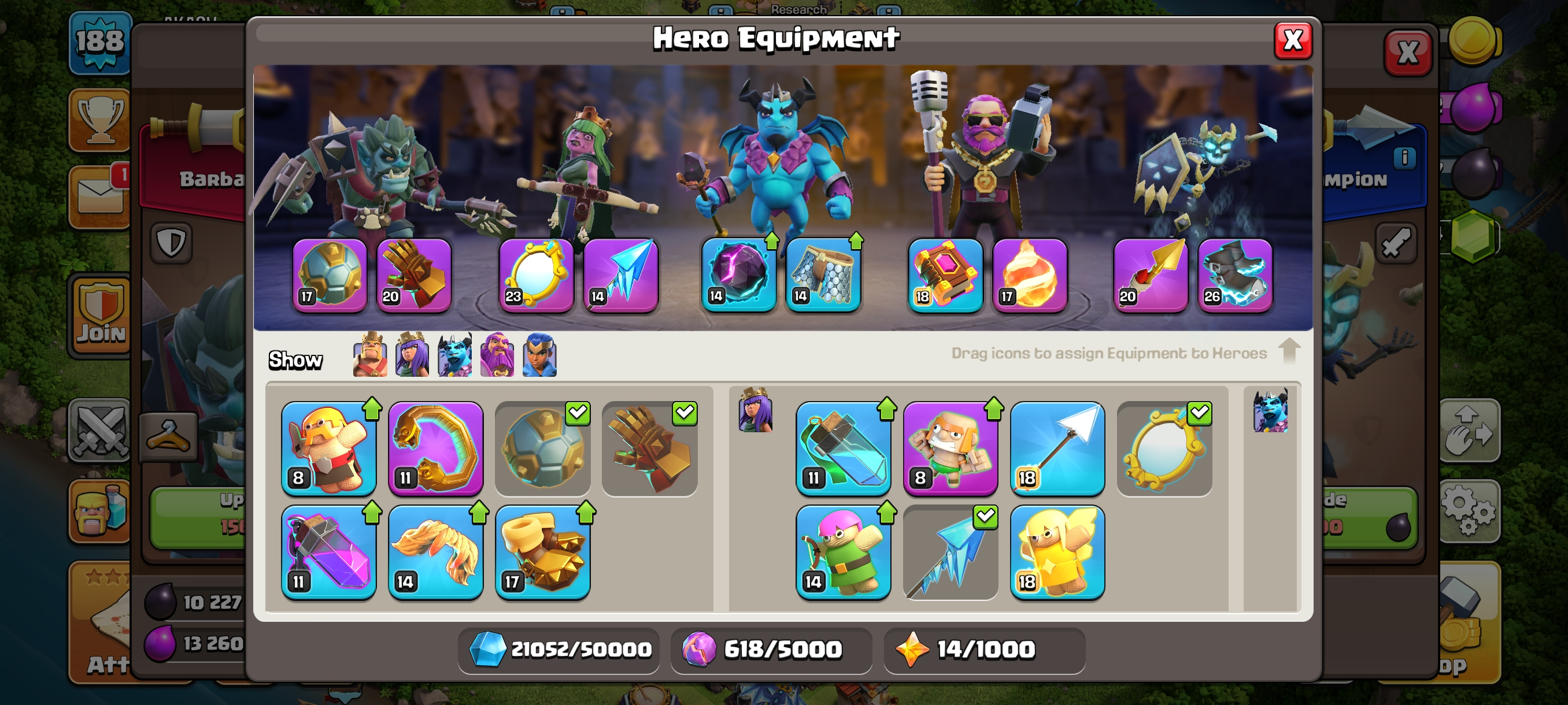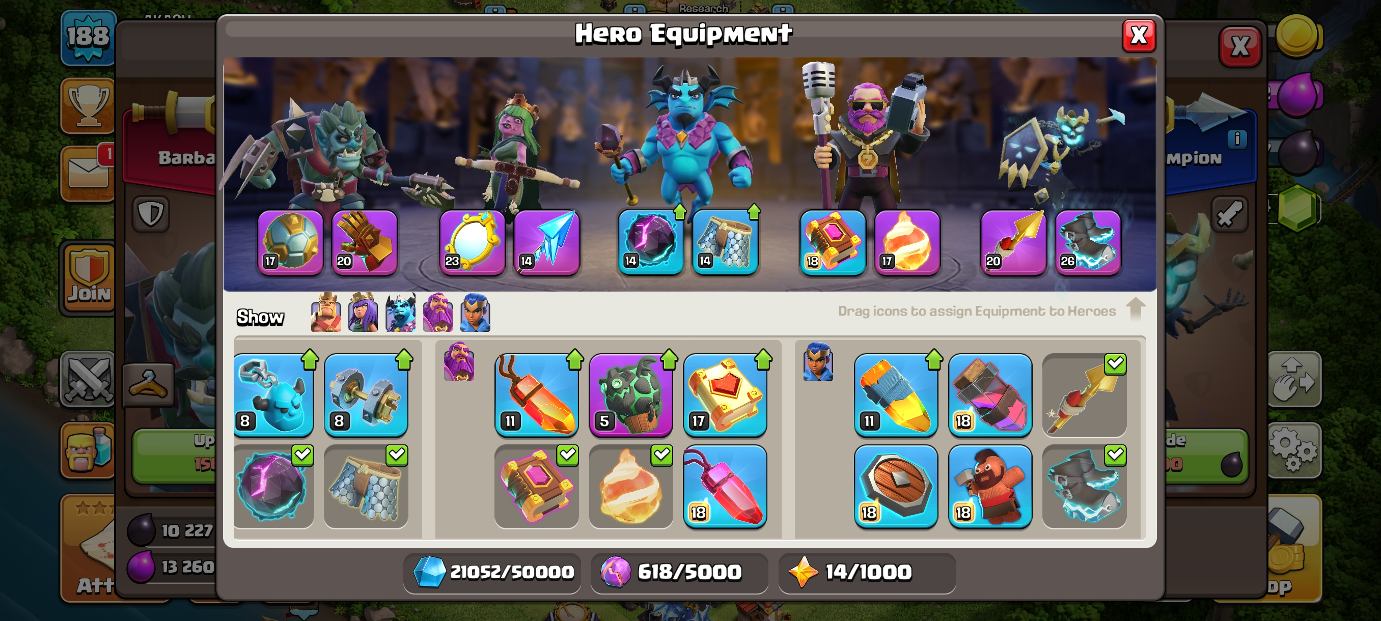 World Best Equipment--10X EPICS NEAR MAX--TH17 SAME MAX--XP188--HERO 71-80-47-55-38--5498 BEST--6 BUILDER--8 SKIN--NC FREE