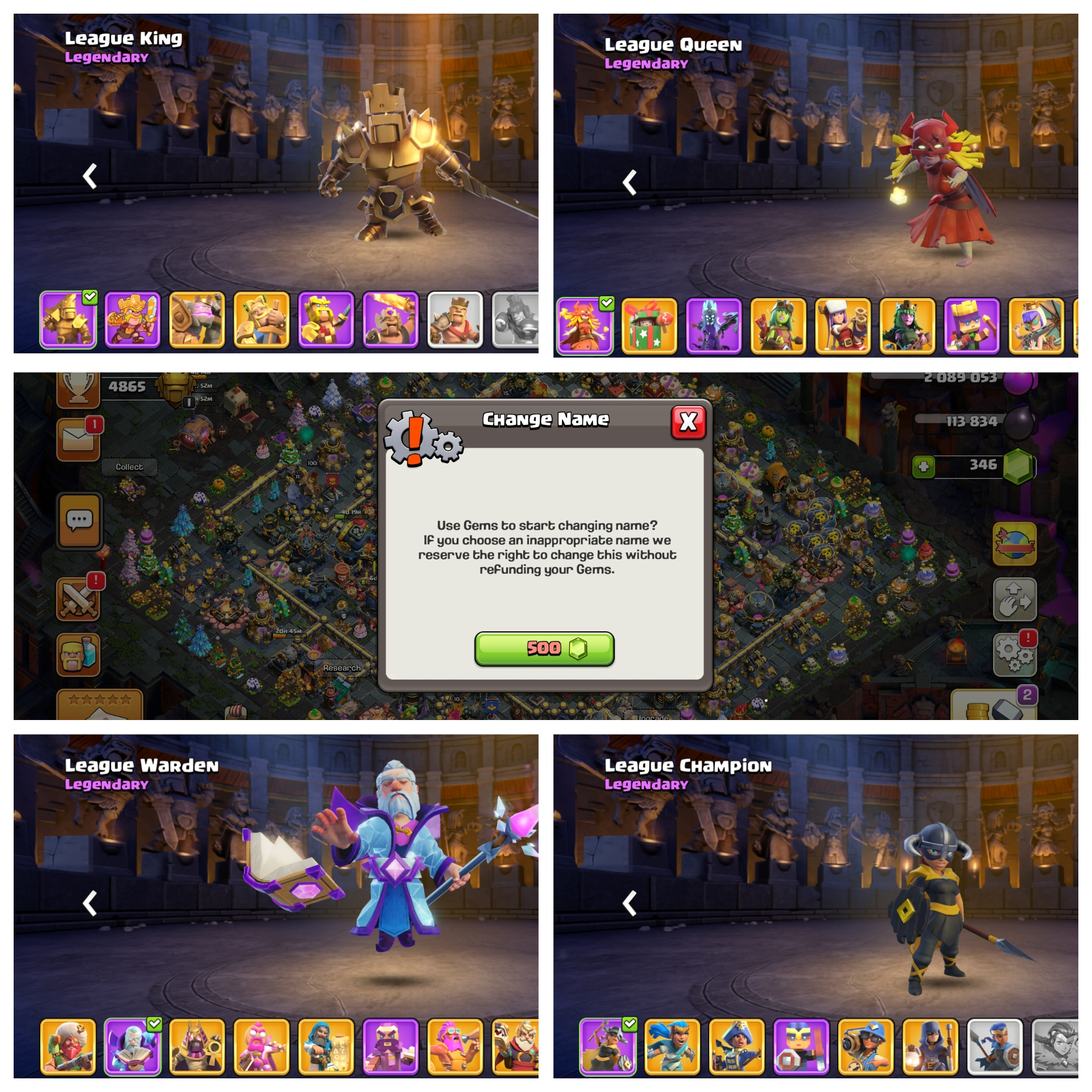 WORLD ONLY ONE-4x LEAGUE SKIN SET-UNLIMITED OBSTACLE-FLOWER-STATUE-TREE-CAKE-29x EQUIPMENT MAX-32x SKIN CLASH OF DRAGON 4x SCENERY-TH17 BOTH VILLAGE MAX TYPE-