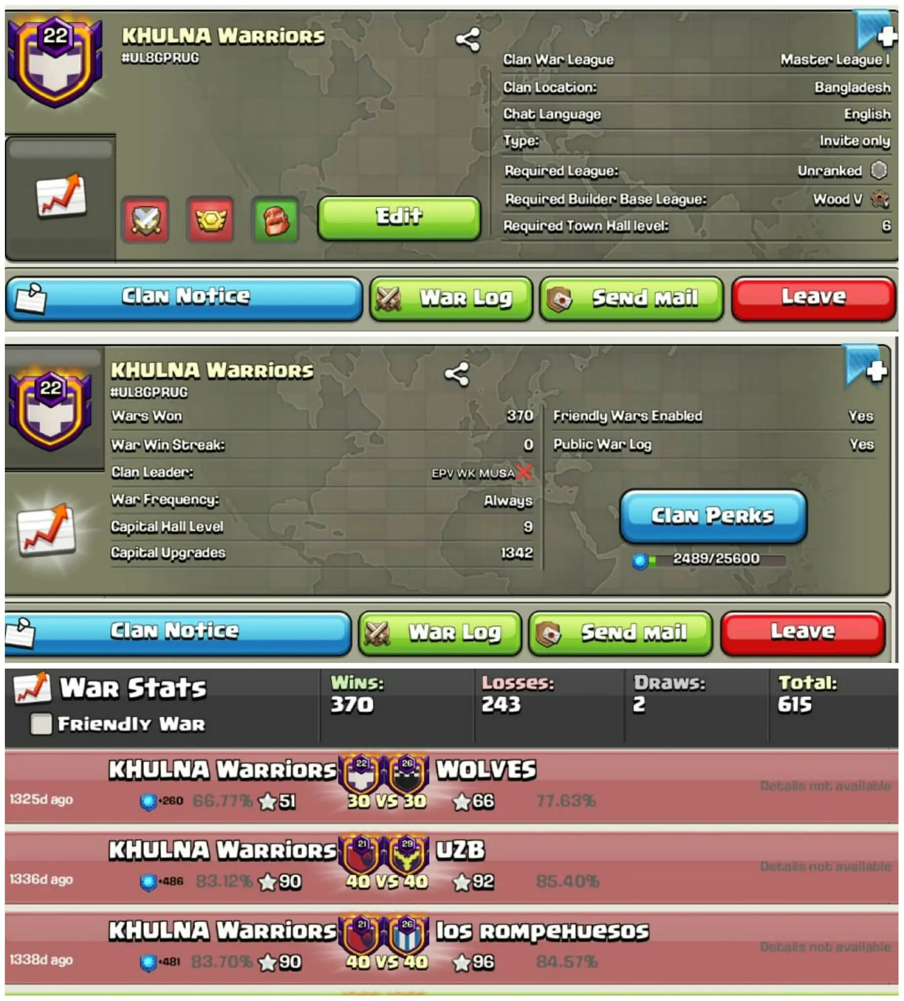 Clan Name: Danger J10➤➤Level-10➤➤115 War Win➤➤Best Cheap Deal