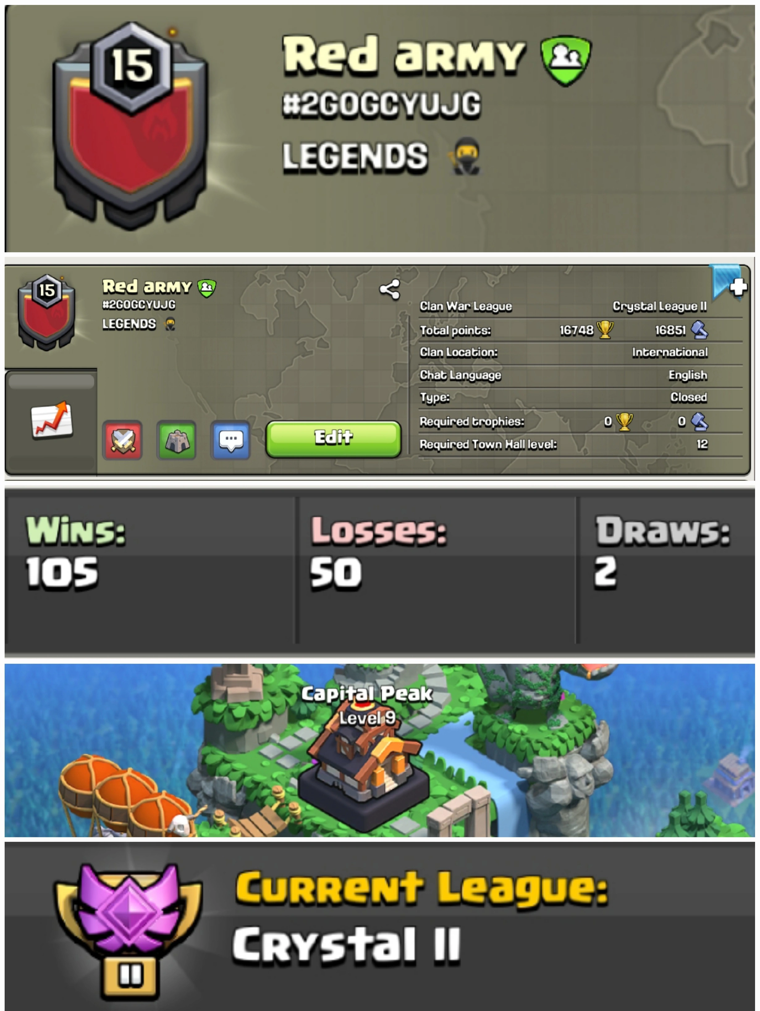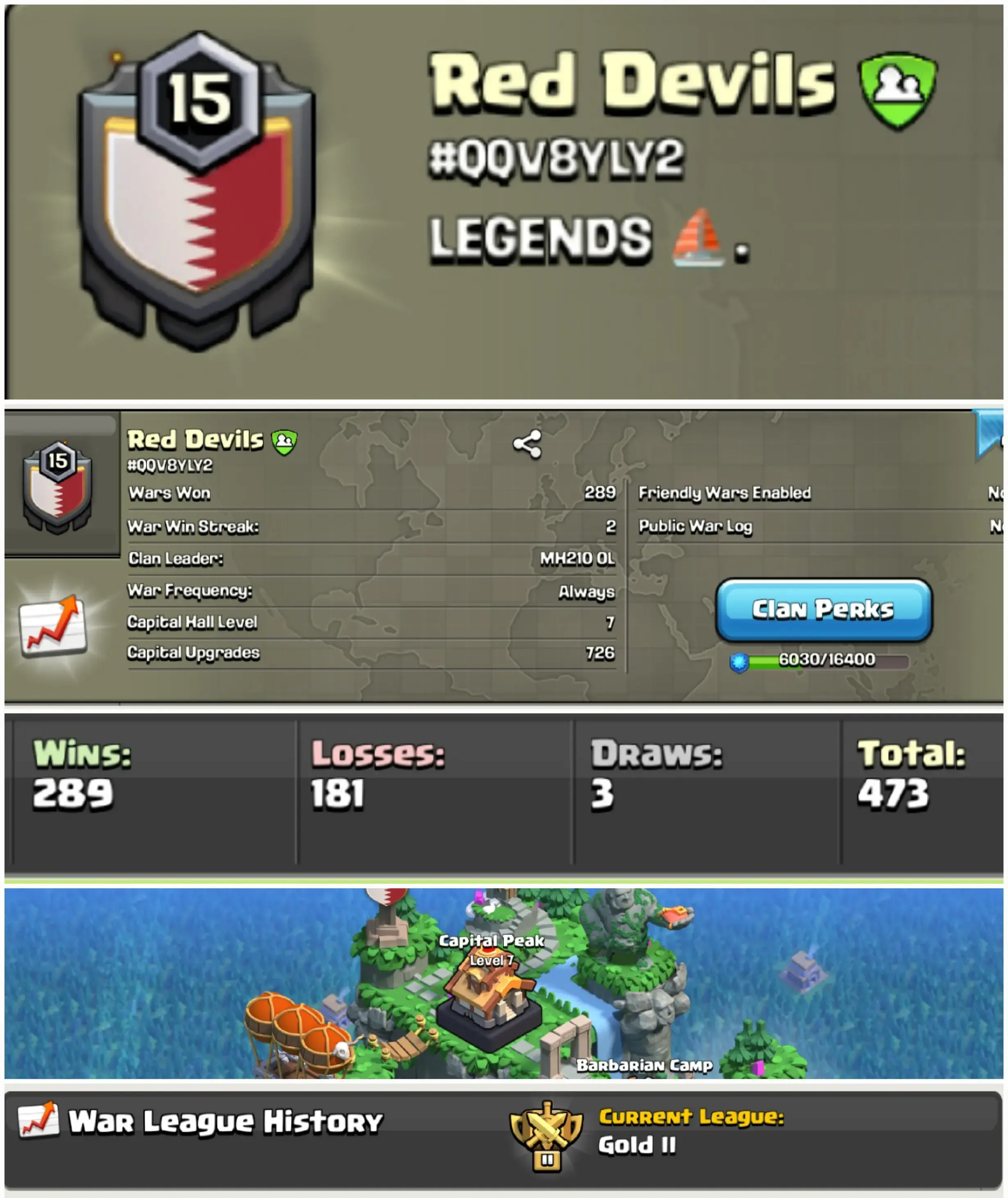 Req And Go !! LEVEL 10.5 !! CAPITAL PEAK 6 !! WIN 61 LOSS 66 !! GOLD 2 !! MOST DEMANDING CLAN !! CHEAP !! INSTANT DELIVERY