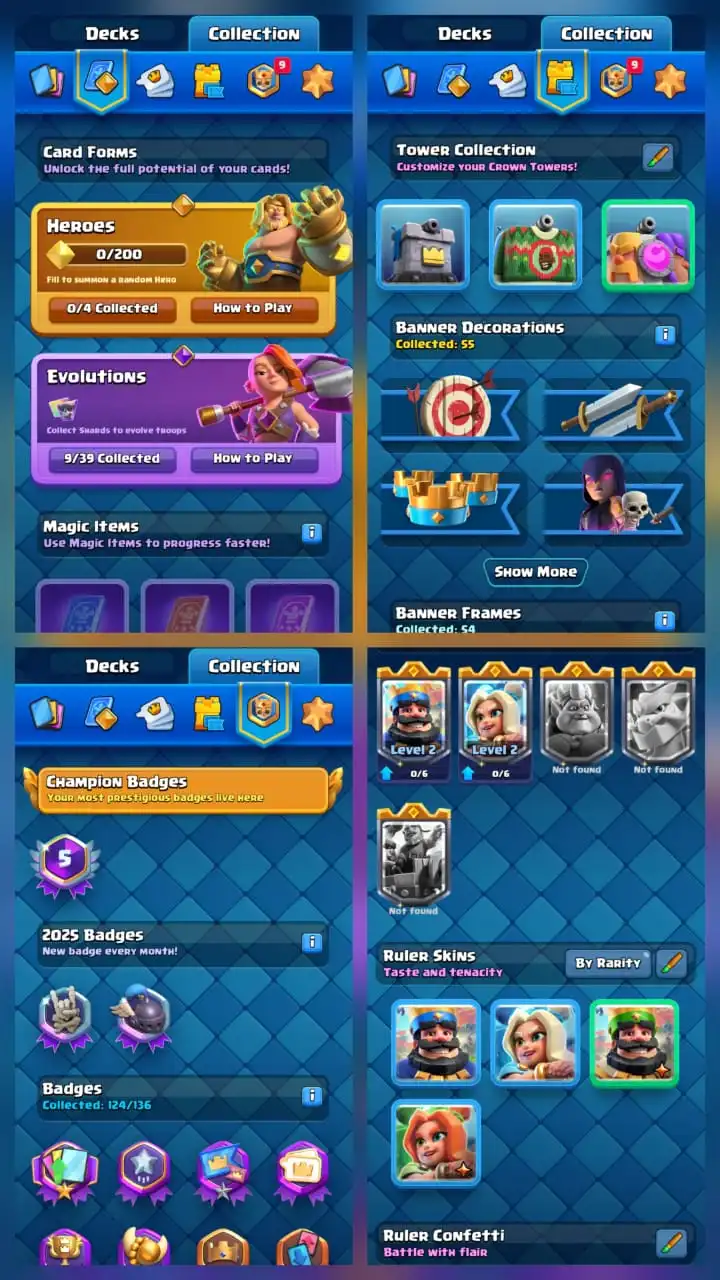 ✨10000 Trophies 🔥 9 Evolutions ❤️🔥 15 Max 🫶 54 Emotes♨️ KT14 •XP 52 •600k Gold • 1000 Gems • NC Available