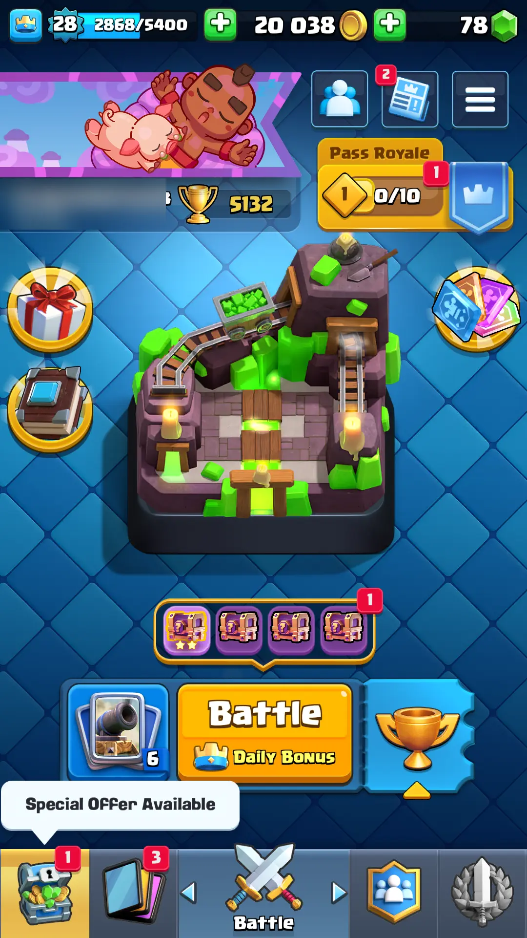 5132 TROPHIES ✨ 10 KING TOWER 👑 28 LVL 🤑 98 CARDS 🚀 14 EMOTE 🚀 0 MAX CARDS ✨ 0 EVO CARDS 🔥 ANDROID & IOS 🚀 INSTANT DELIVERY