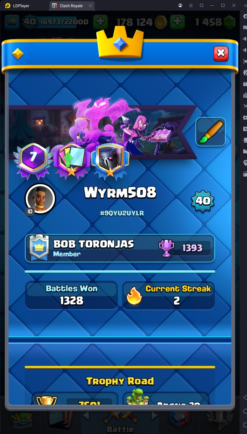 7501 TROPHY 🏆 40 LVL 💯 KT 13 👑 118 CARDS ♦️ EMOTE 32 🎭 #9QYU2UYLR ⸱ TAG ACCOUNT ♥️