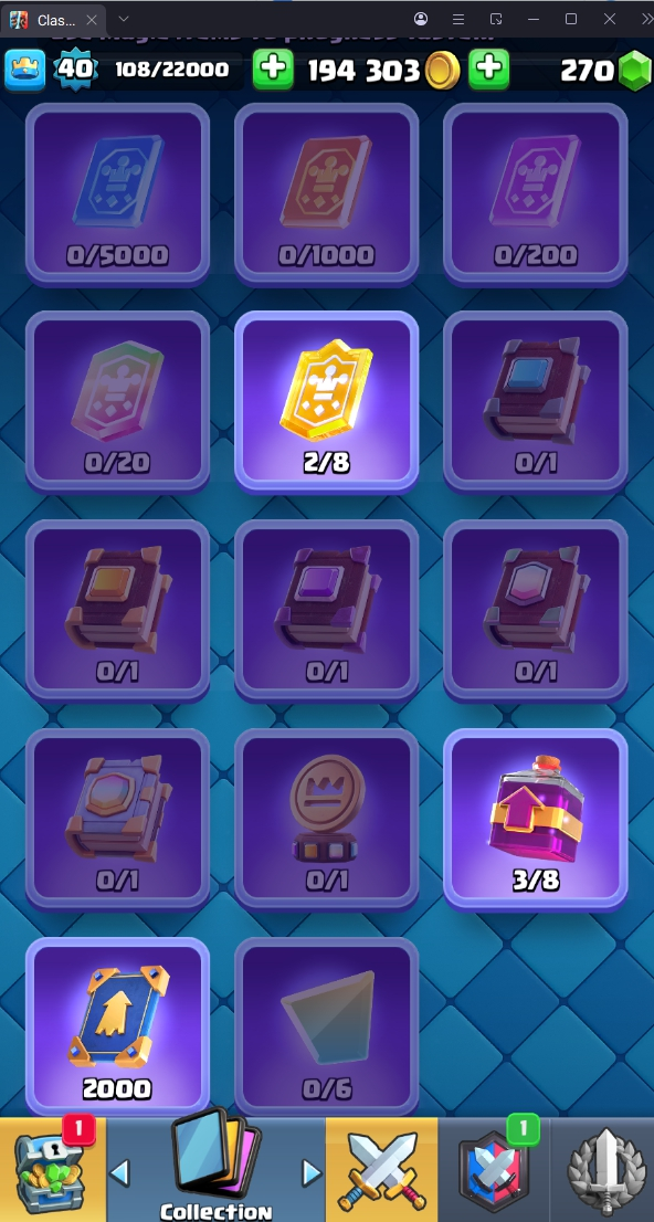 8000 TROPHY 🏆 40 LVL 💯 KT 13 👑 118 CARDS ♦️ 3 MAX CARDS 👑 0 ELITE CARDS 🔮 7 EVO 💯 EMOTE 45 🎭 #CPYLRLL9L ⸱ TAG ACCOUNT ♥️
