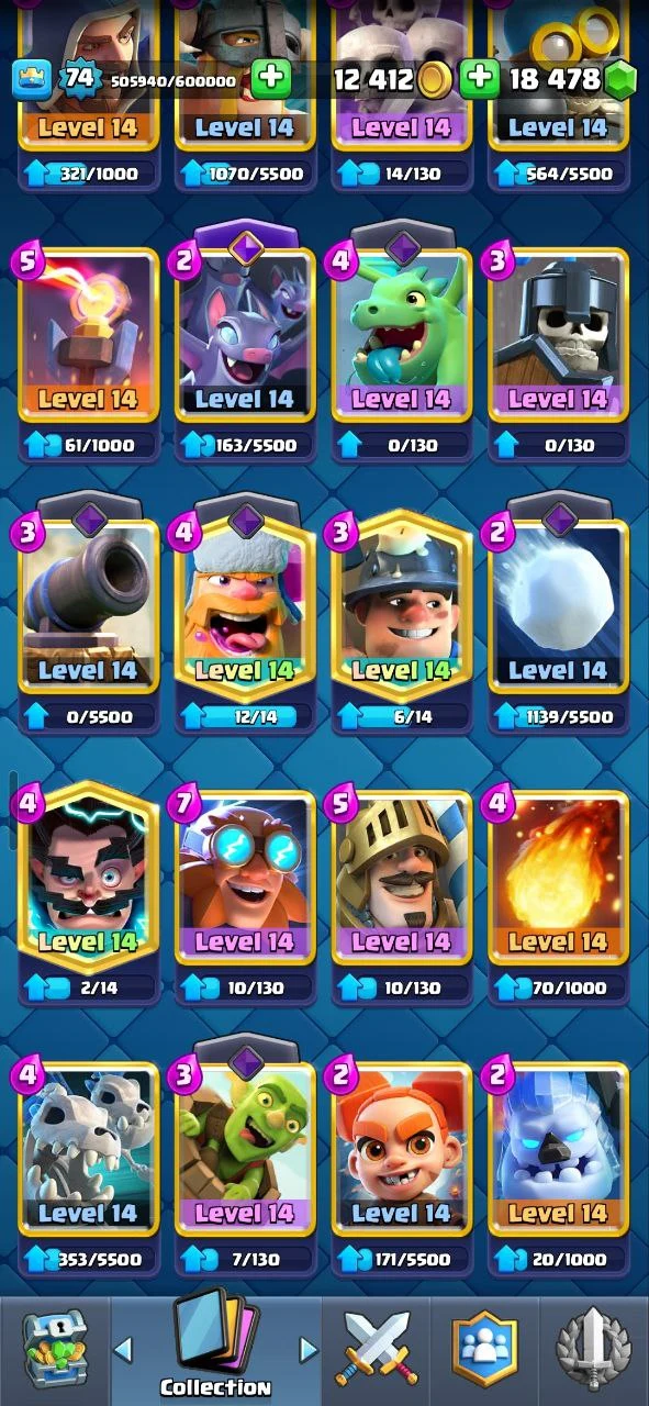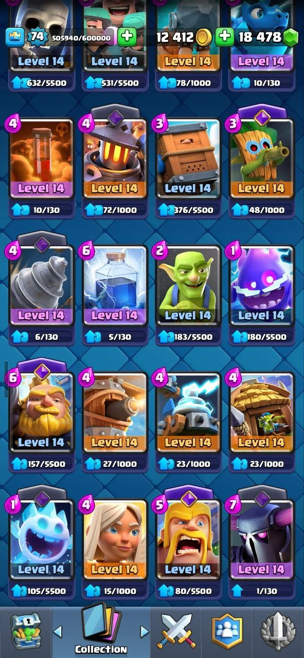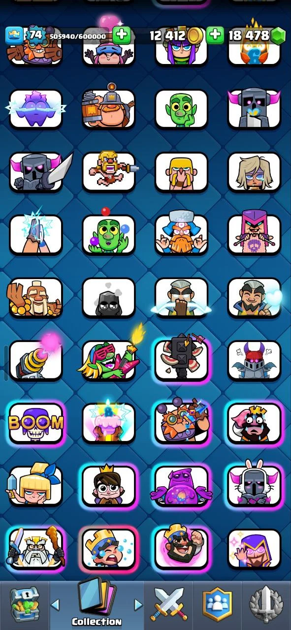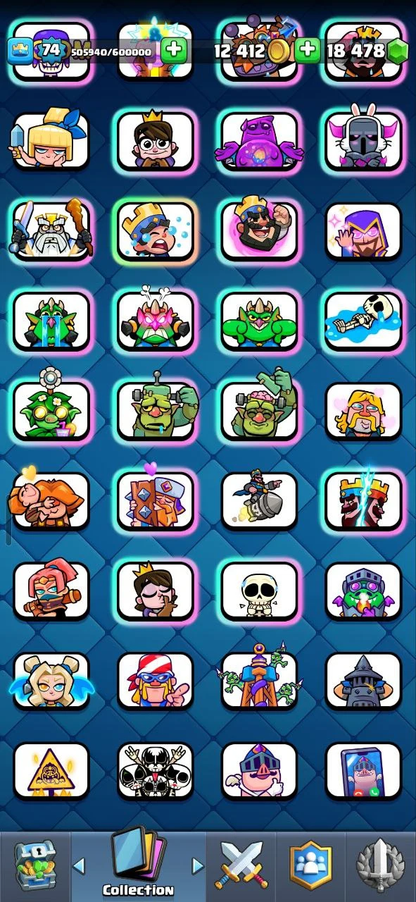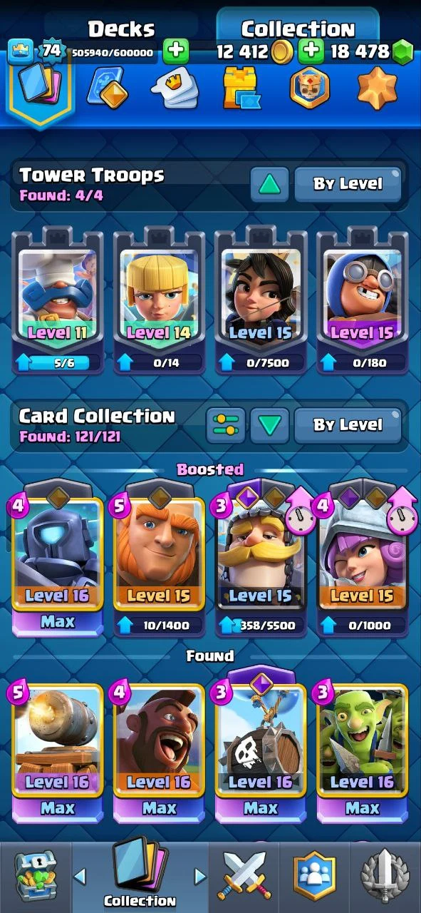 🌟 (CHEAPEST) 20 LEVEL 16 MAX CARDS 👑 74 XP LEVEL 🎯 18400 GEMS 💎 18 EVOLUTIONS 😈 EXCLUSIVE EMOTES & TOWER SKINS ✨️ OG 9 YEARS PLAYED 🏅 TOTAL 94 LEVEL 14 CARDS 🔥 ALMOST KT 16 ✅️ INSTANT DELIVERY 🚚