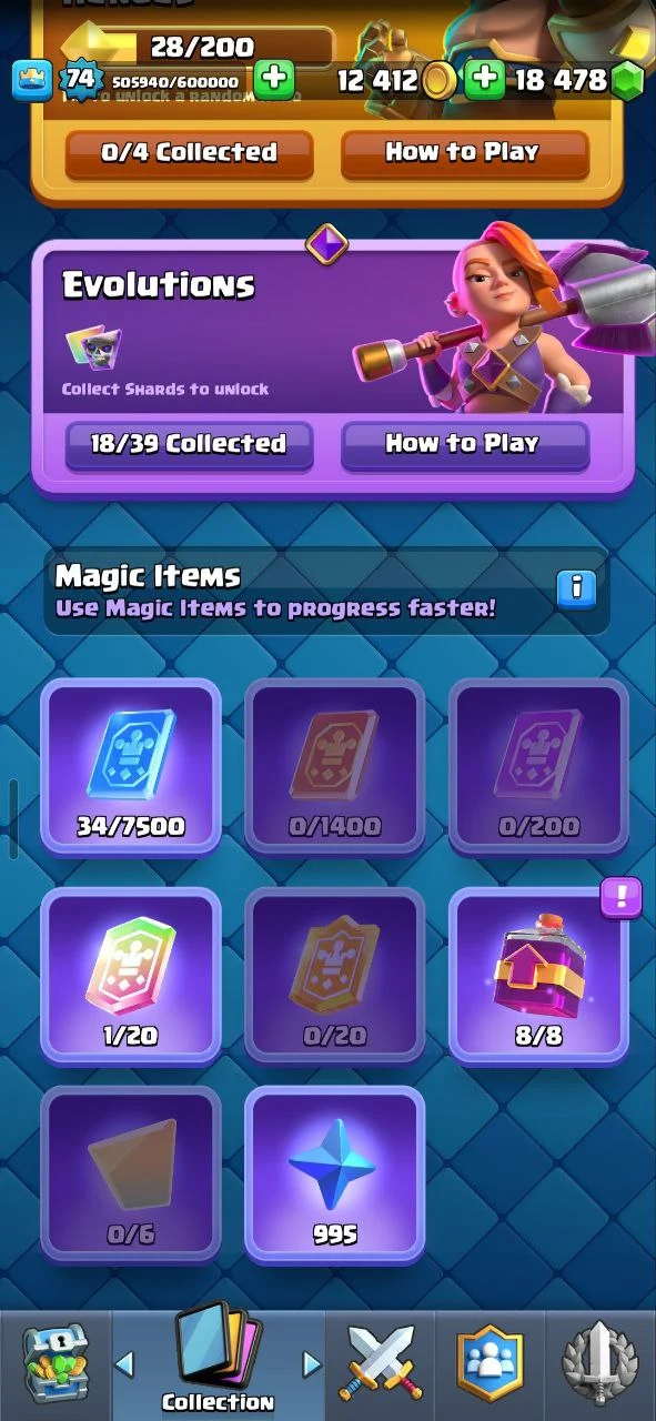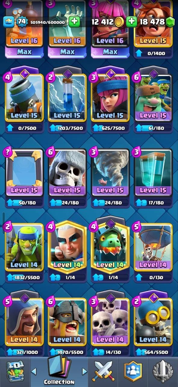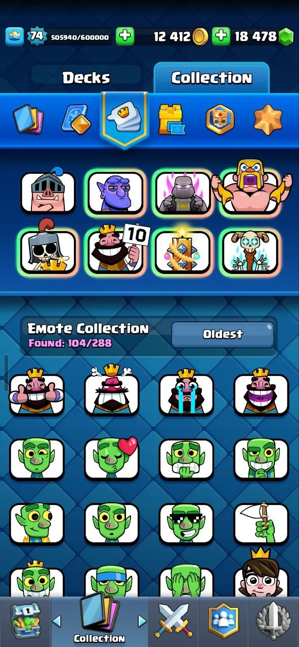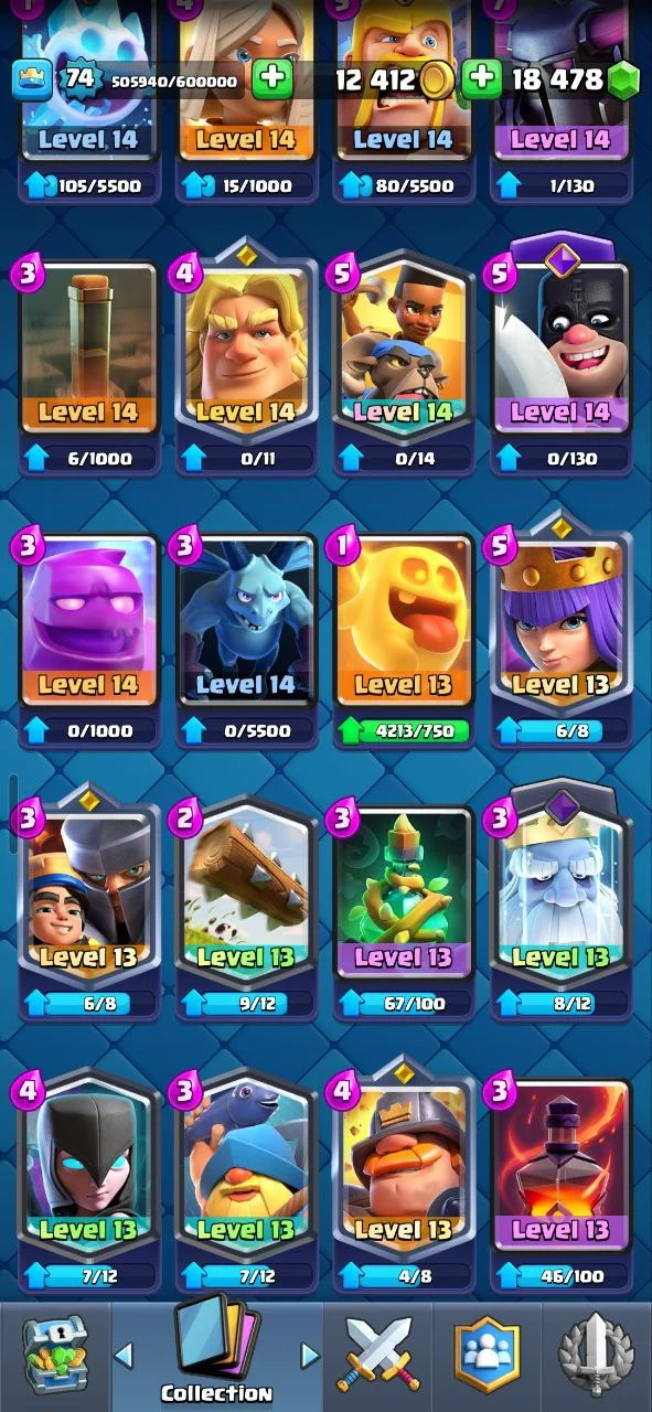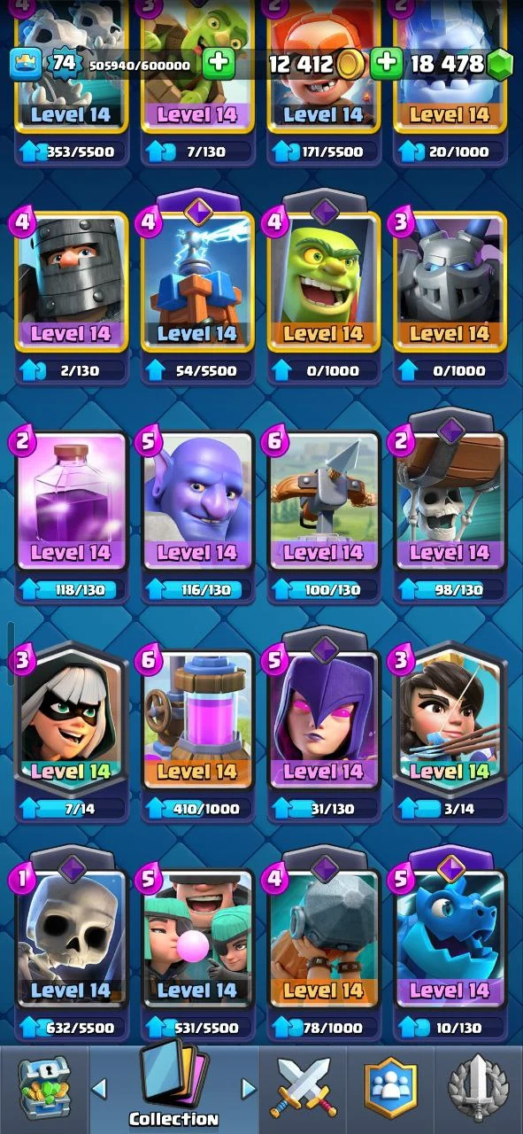 🌟 (CHEAPEST) 20 LEVEL 16 MAX CARDS 👑 74 XP LEVEL 🎯 18400 GEMS 💎 18 EVOLUTIONS 😈 EXCLUSIVE EMOTES & TOWER SKINS ✨️ OG 9 YEARS PLAYED 🏅 TOTAL 94 LEVEL 14 CARDS 🔥 ALMOST KT 16 ✅️ INSTANT DELIVERY 🚚
