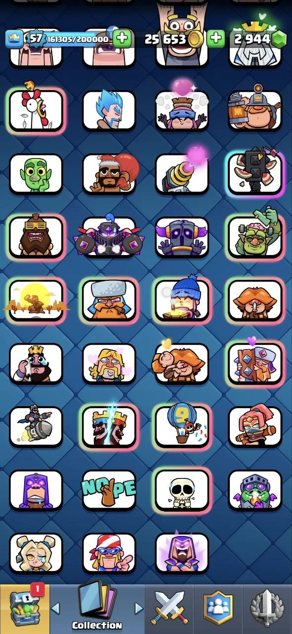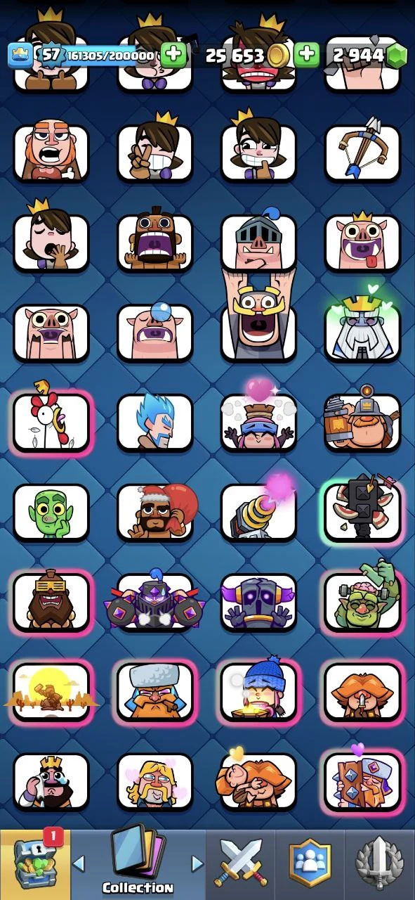 😍 FREE COC TH14 ✨ RARE KISS EMOTE ✨ PRINCESS SHUSH EMOTE ✨ KT 15 🔱 LVL 57 🏆 CUPS[9326] ✨ MAX CARDS [48] ✨ ELITE [14] ✨ EVO [10] ✨ LVL 14 [34] ✨ EMOTES [71] ✨ LOADED MAGIC ITEMS ✨ FREE NAME CHANGE ✨ CARDS [120] ✨ 10000% SAFE