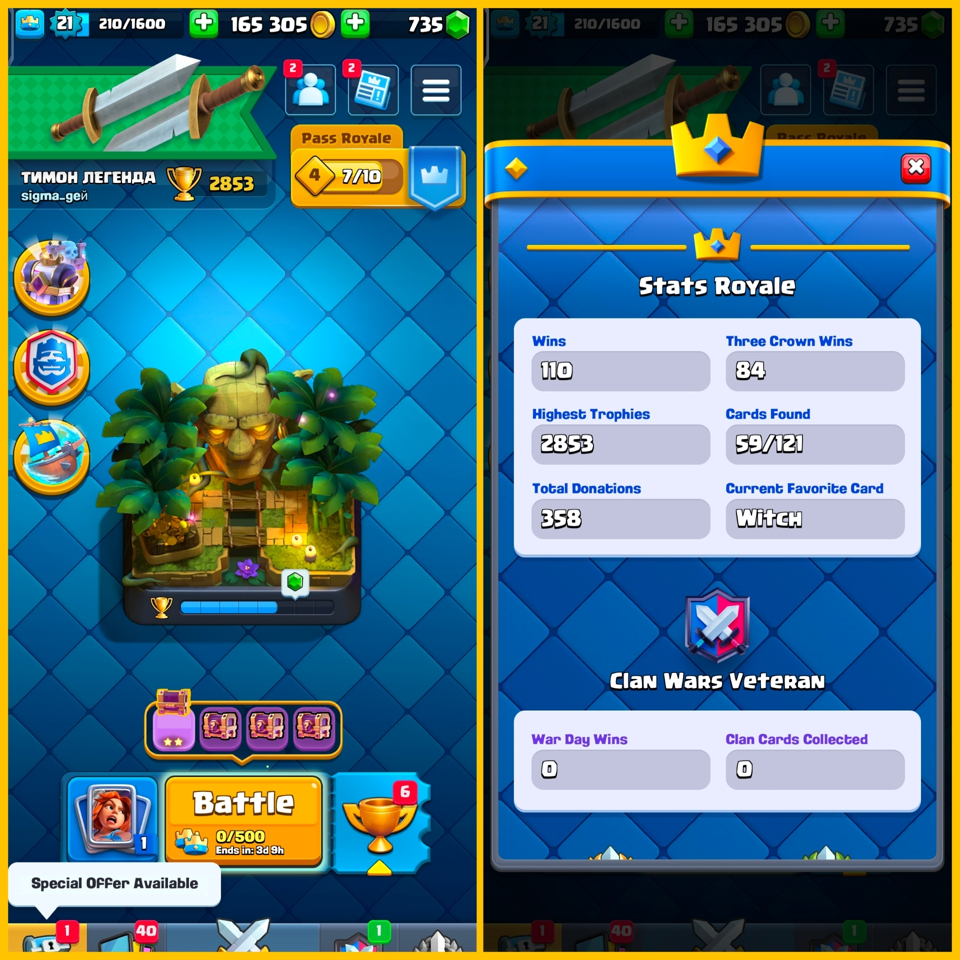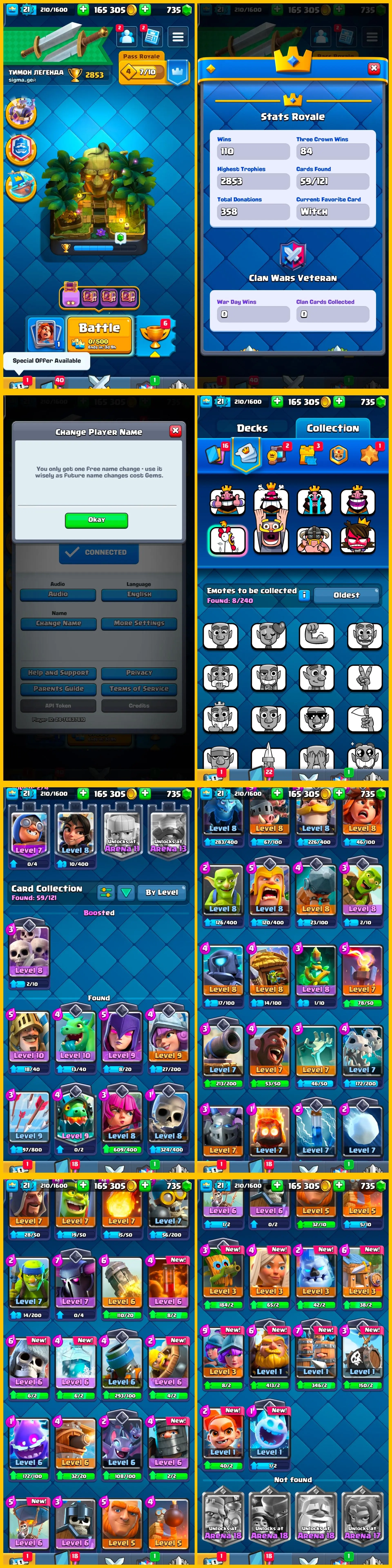 [Level 21] Beginners Account | 2853 Trophies, 165k GOLD, 735 Gems & Free NC Avbl | 2 Level 10 Cards & 4 Level 9 | Instant Delivery | CH453