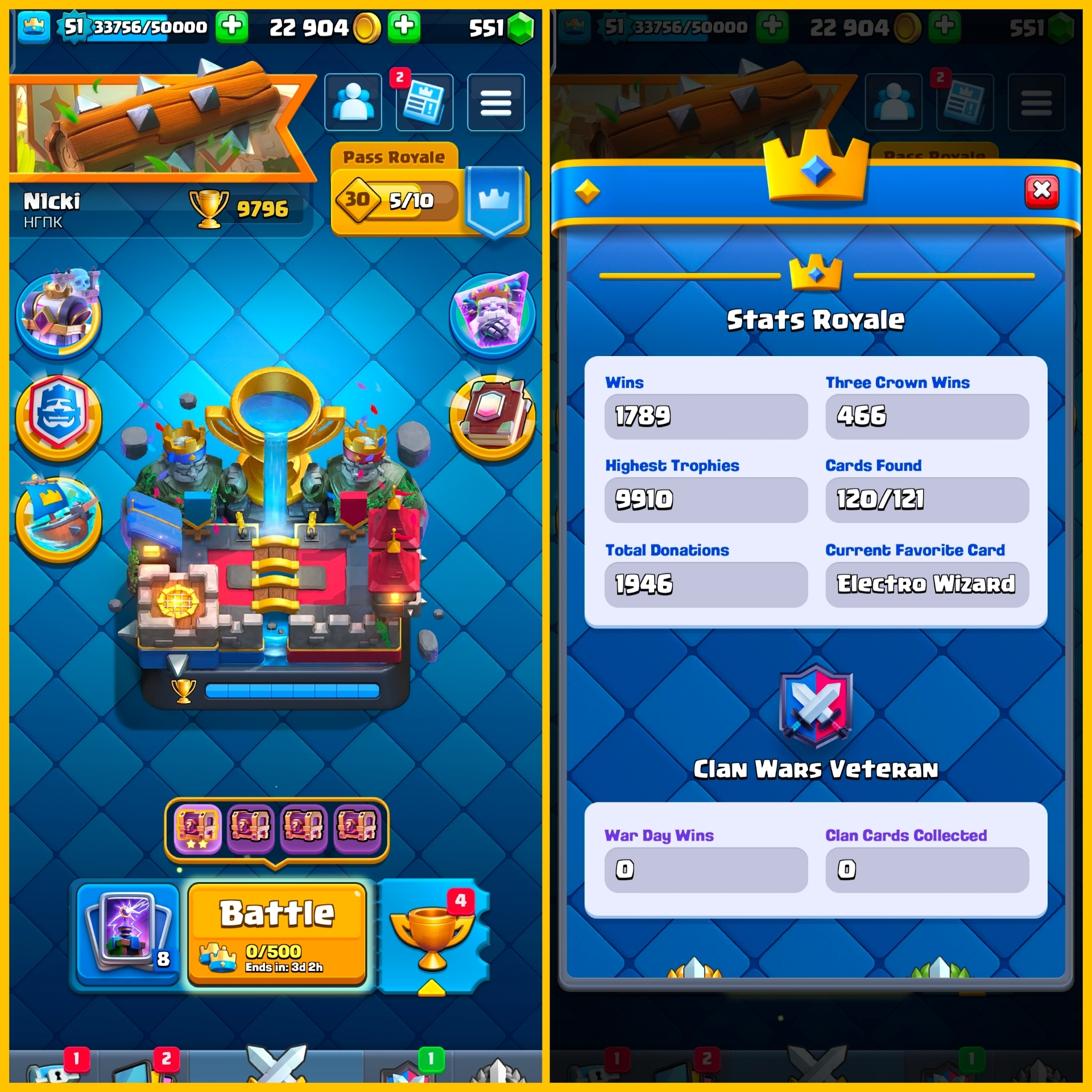 [LVL 51 + 9.7K TROPHY] 120 ALL Cards, Free NC AVBL | 9 EVOS Unlock | 6 Level 15 + 2 Level 14 | 14 LVL12, 26 LVL11, 34 LVL10 & 27 LVL9 | CH459