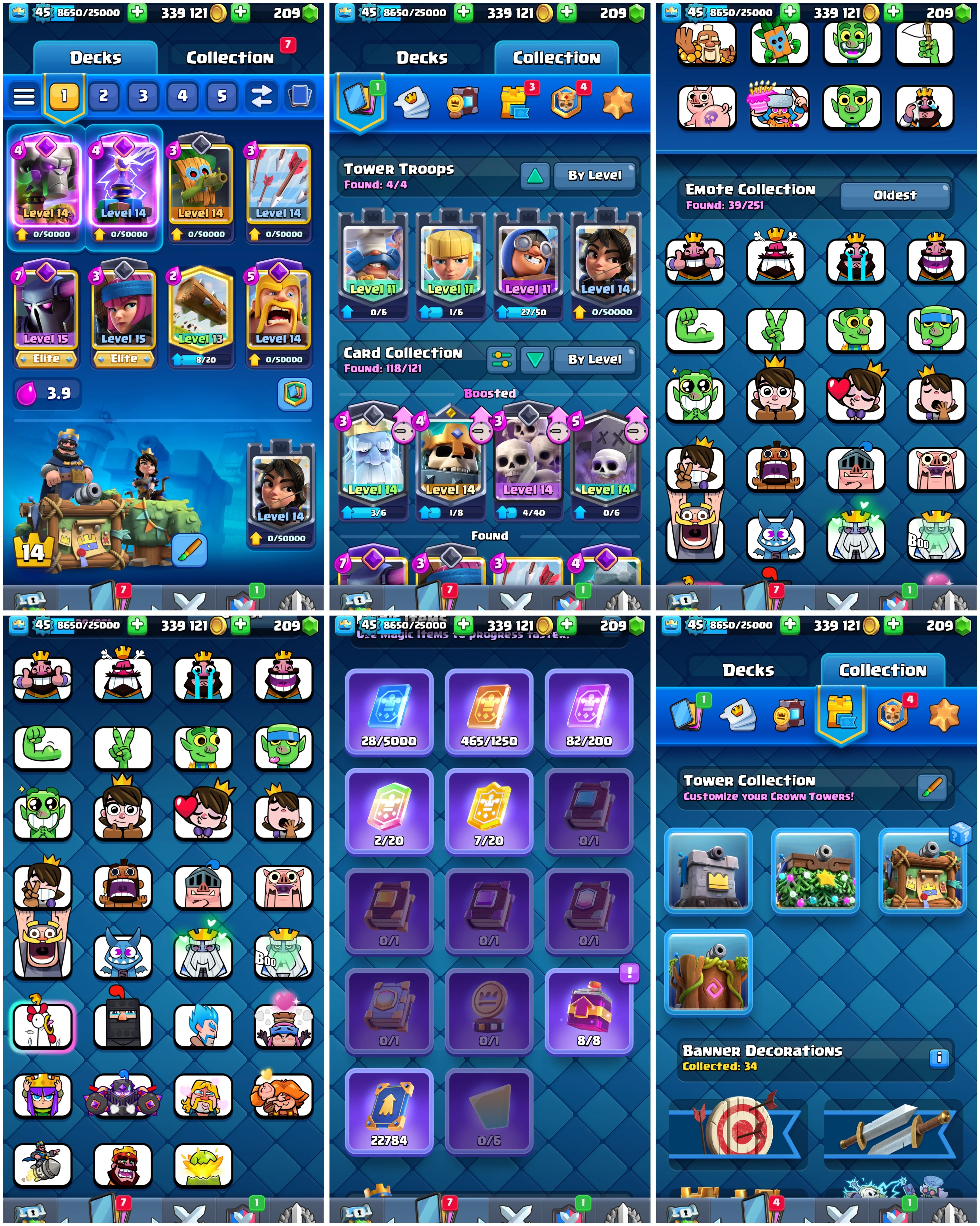 💎 Max Out | Pro Level 🌟 9758 Trophies 🏆| Level 45 🔥 | King Tower 14 👑 | Arena 24 ⚔️ | Emote 39 😎 Cards 118 🚀 Instant Delivery 🚀 Lifetime Access ✅ | #P726