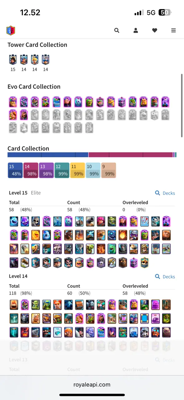🔥 RAREST ALMOST MAX 🔥 CR Lv.66 🔥 6 Years Played 🔥 Seasonal Arena 1 🔥 10900 Trophies 🔥 KT 15 🔥 17 Evo Cards 🔥 118 Max Cards & 58 Elites 🔥 180 Emotes 🔥 26 Tower Skins 🔥 [F2752] 🔥