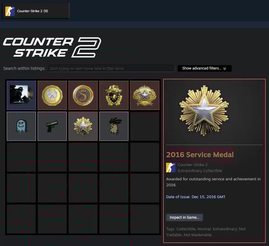 Premier Ready【9 Medals】DreamHack 2014, Silver Colombus 2016, Gold Vanguard, Bloodhound, 2019 Service, 10, 5-Year Veteran, Loyalty, GO | Warranty