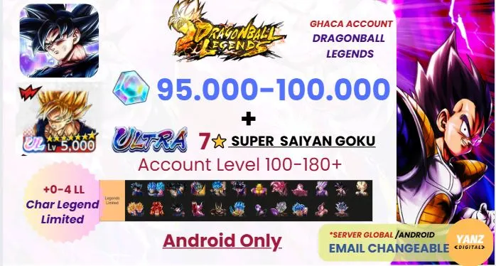 [ANDROID] DBL Account | 95000–100000 Chrono Crystals + UL Super Saiyan Goku (7 Stars) + | Level 100–180+ | 0–6 Legends Limited