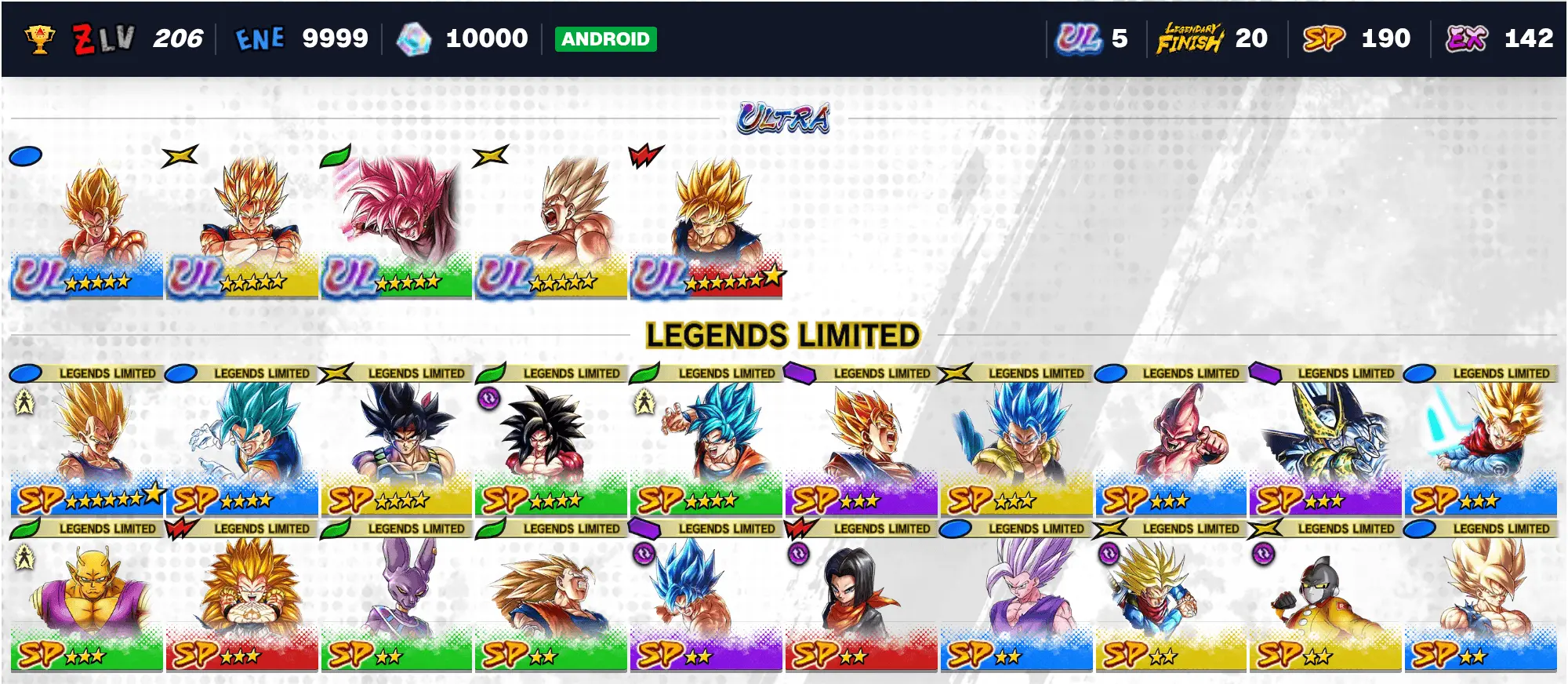 🔥 UL 5 Super Vegito | UL 7 Super Saiyan Goku 💎 10180 Chrono Crystals ⭐ 17 LF | 186 SP ⚡ Android DB Legends Account 🎮 DB-YWC47P
