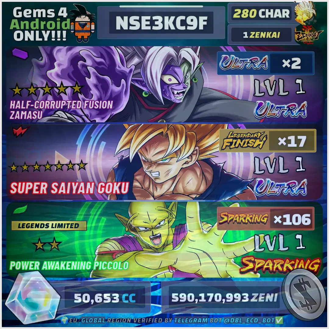 🔥 BEAST DBL Account: [📱 Platform: Android, 👤 Characters: 280, 🌟 Ultra: 2, ⚔️ Sparking: 106, 💎 Crystals: 50653, 👑 Limited: 17, ⚡ Zenkai: 1] ⸱ WHALE ACCOUNT | INSTANT DELIVERY !AGG02234