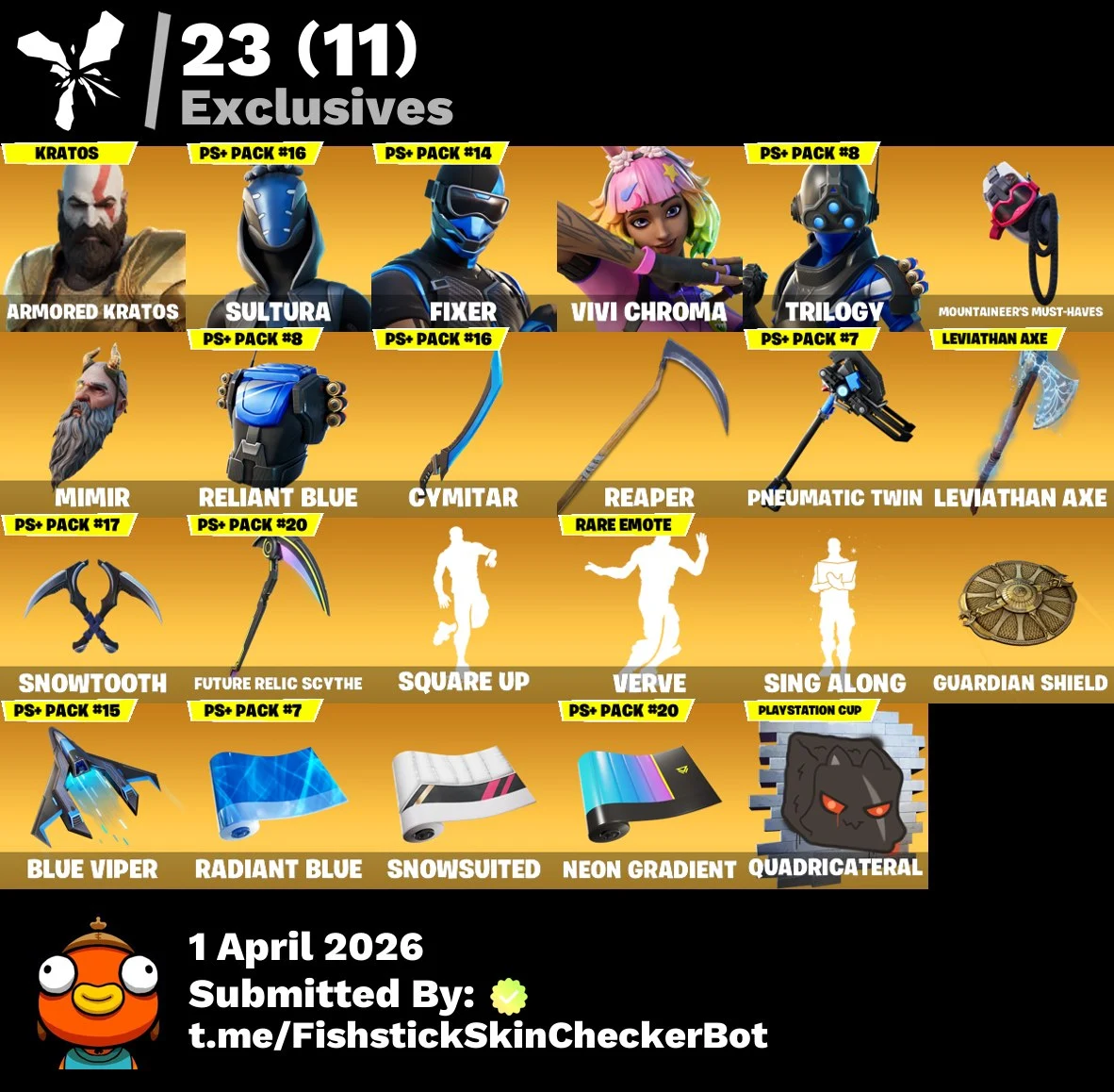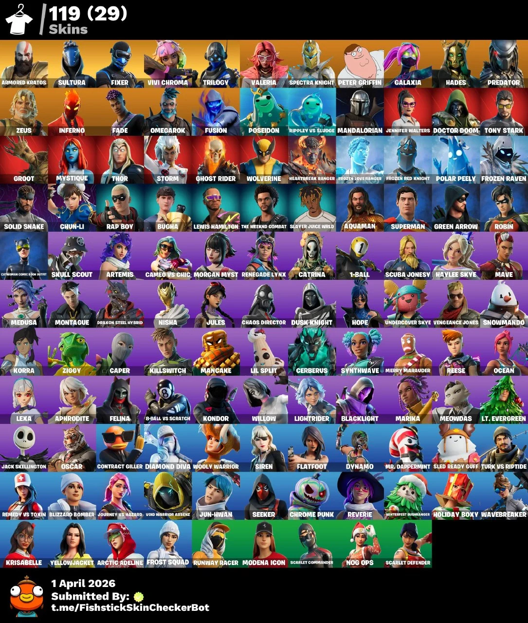 🔥 119 Skins Stacked Account ⭐ Leviathan Axe 🔥 Kratos 💥 Peter Griffin ⭐ Rare Collabs 💥 700 V-Bucks