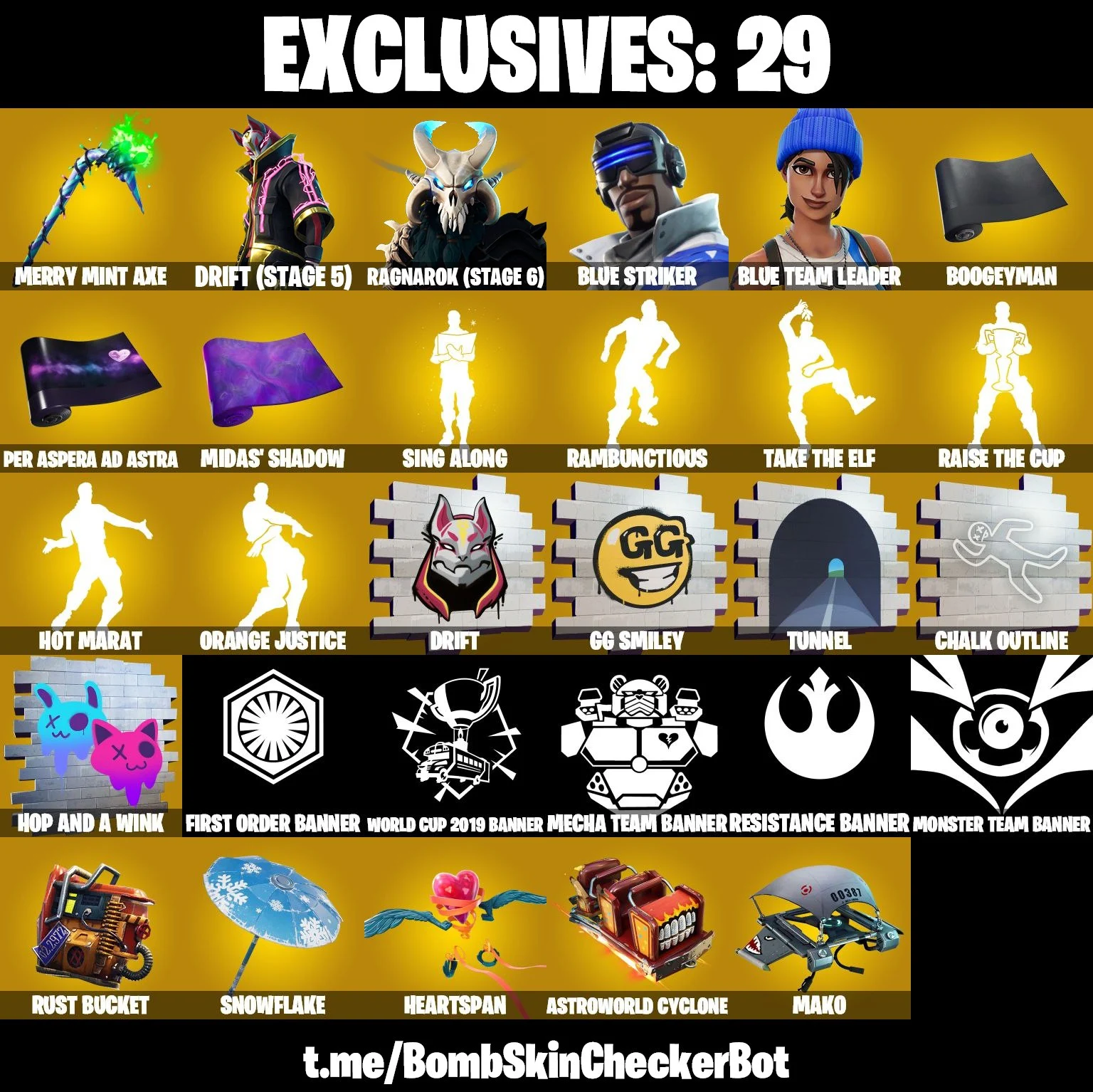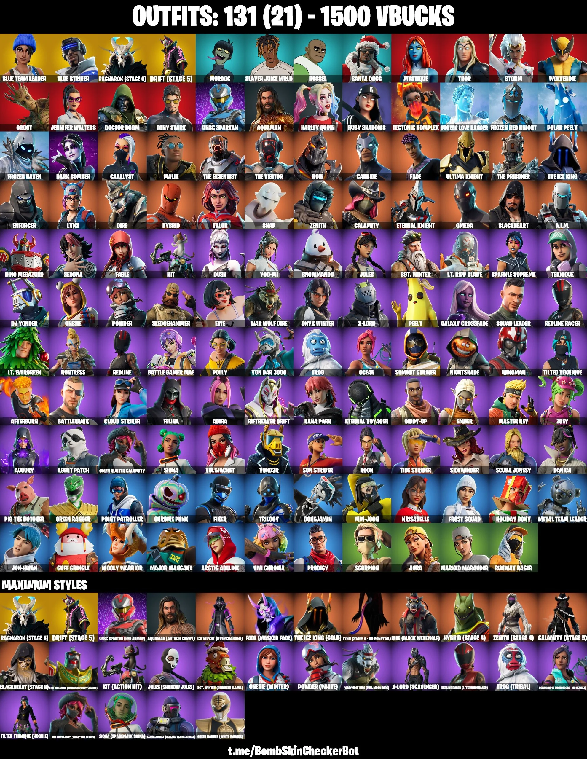 🔮131 Skins🔮 Merry Minty Pickaxe💎Hot Marat💎Mako💎Raise The Cup💎Rambunctious💎Take The Elf💎Ragnarok (Stage 6)💎Rust Bucket