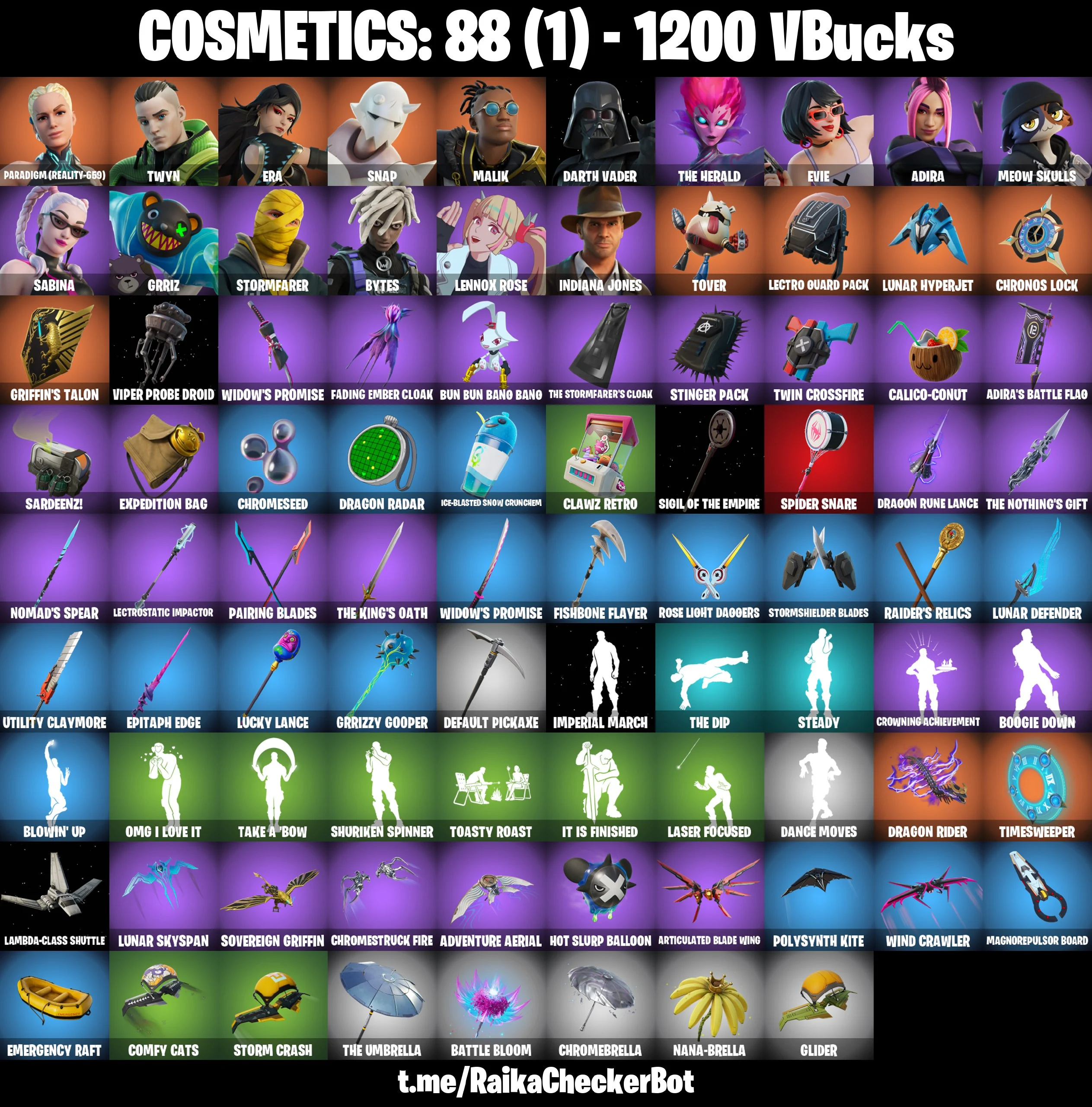 16 SKINS | Malik | Twyn | Snap | Paradigm (Reality-659) | Darth Vader | Adira | The Herald | Grriz | [PC/PSN/XBOX] | 1200 VB